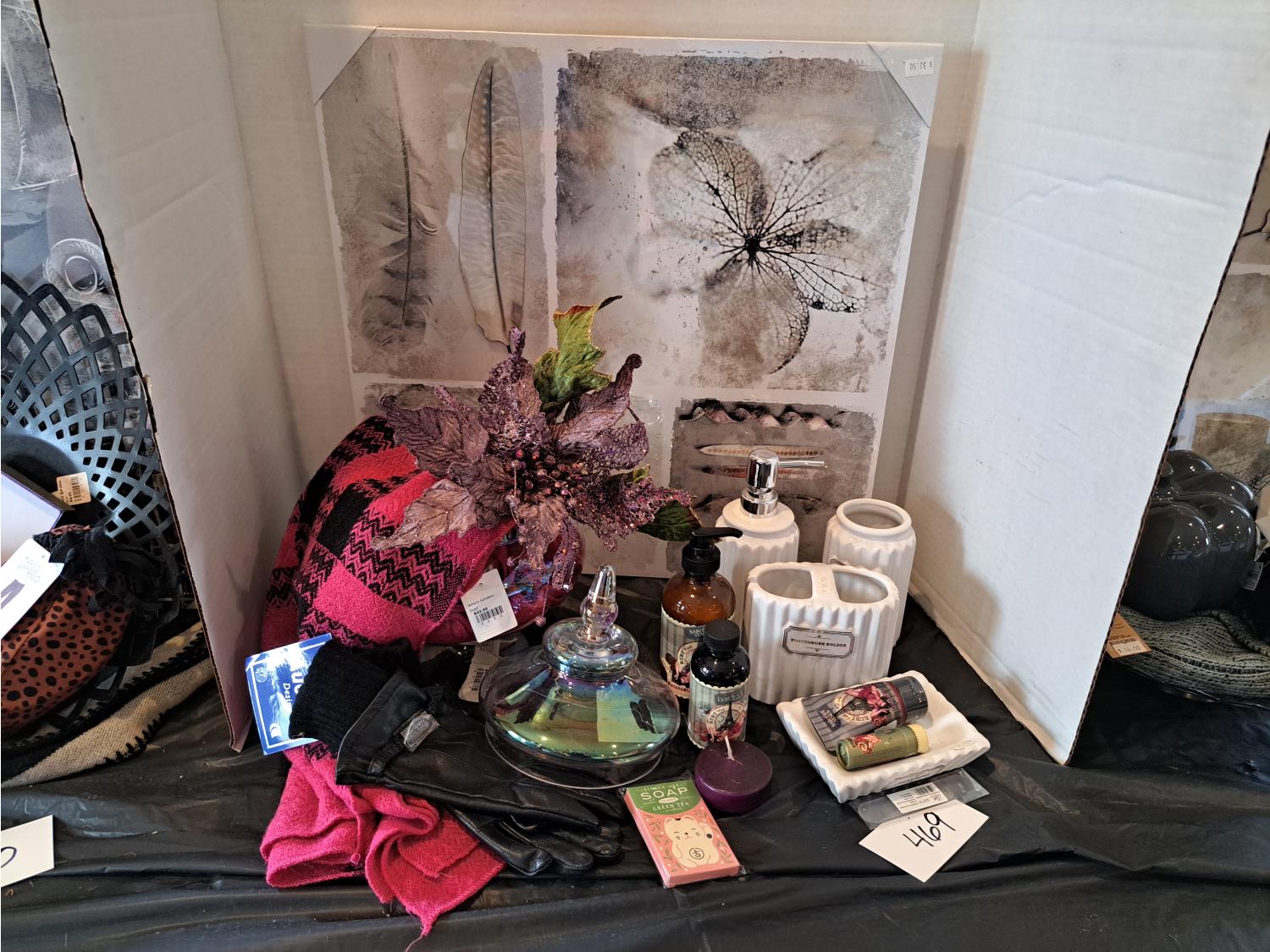picture, floral decor piece, gloves, barefoot products