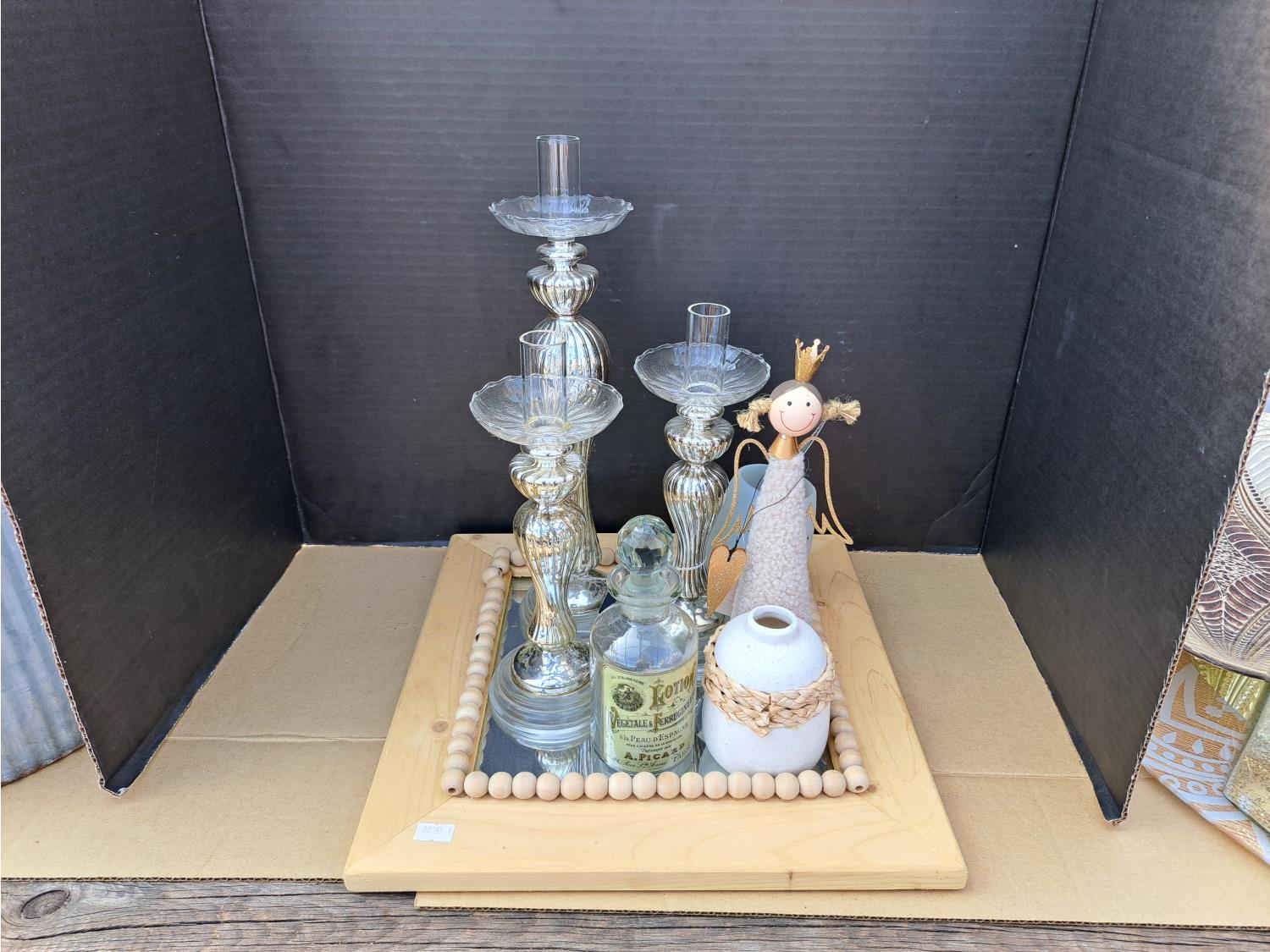 755 Beaded Mirror, Candle Sticks and Home Decor (Unused)