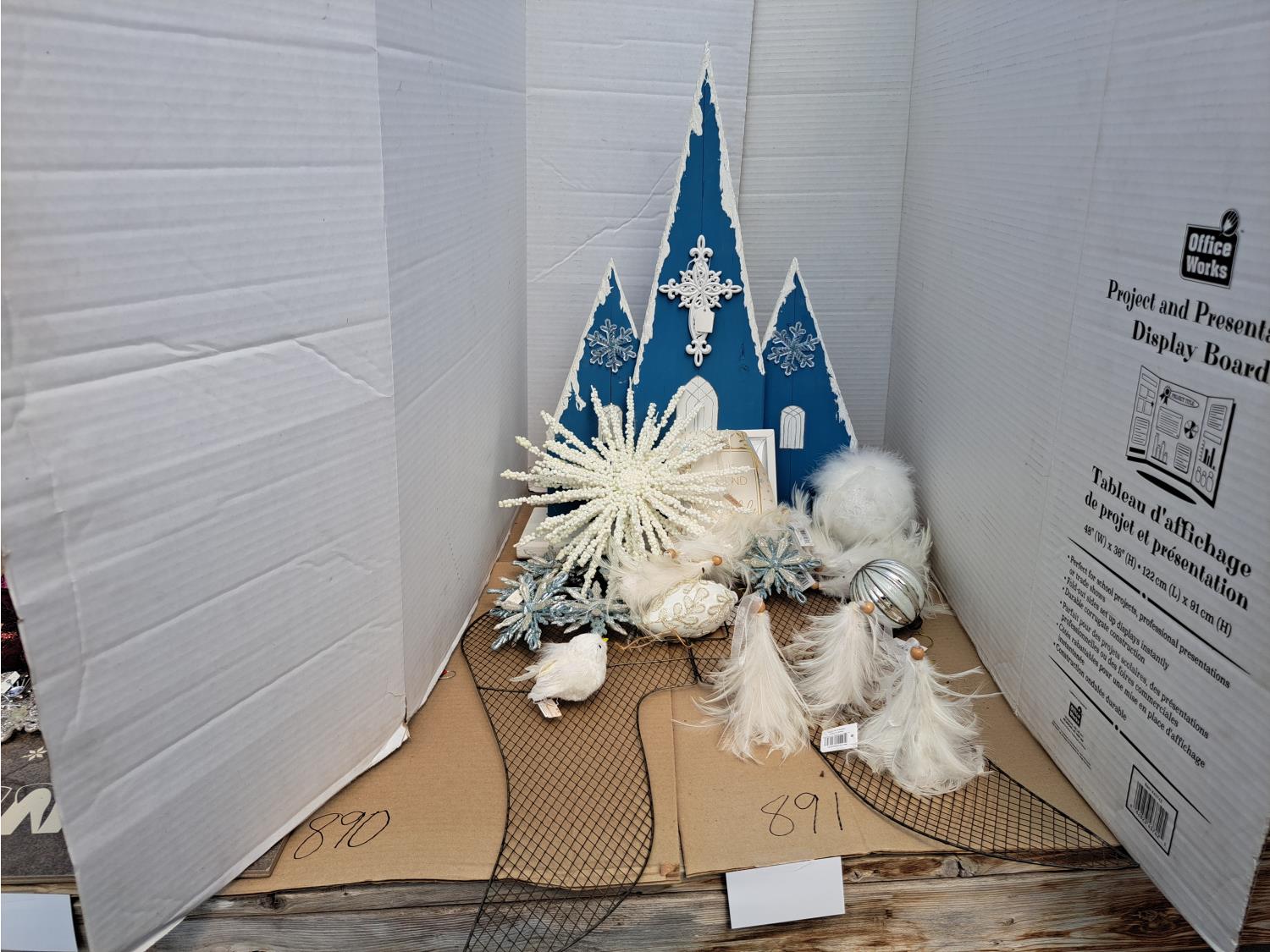 891 Christmas Church and Feathery Ornaments
