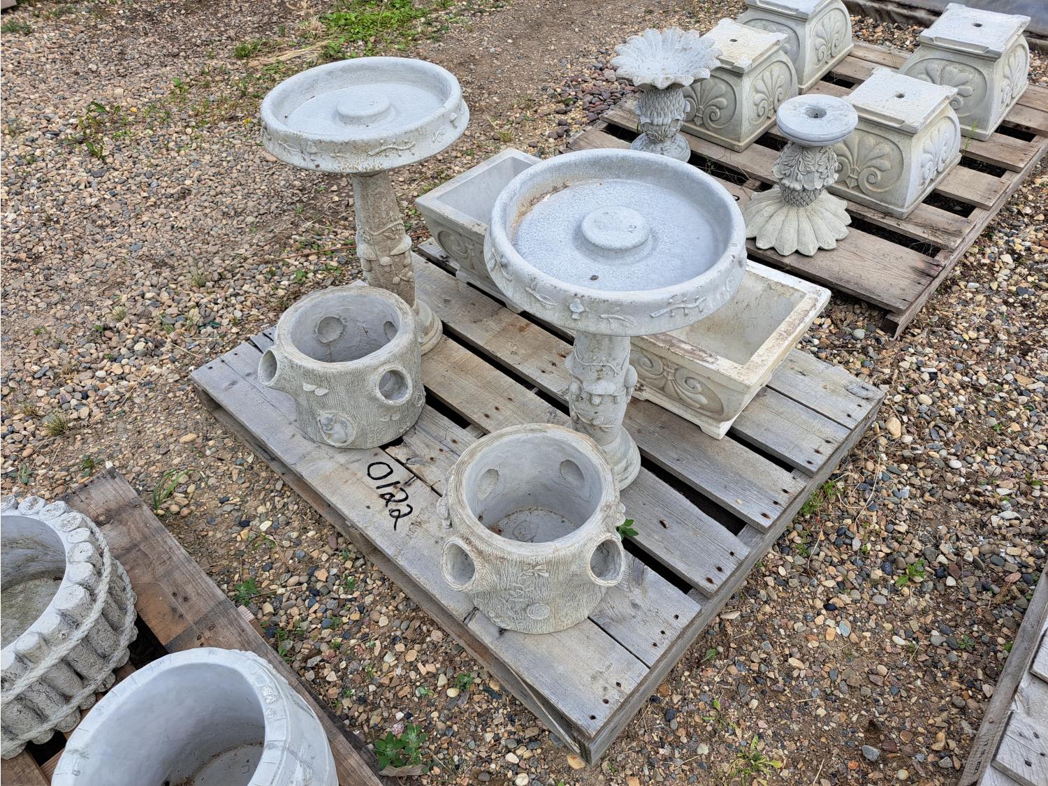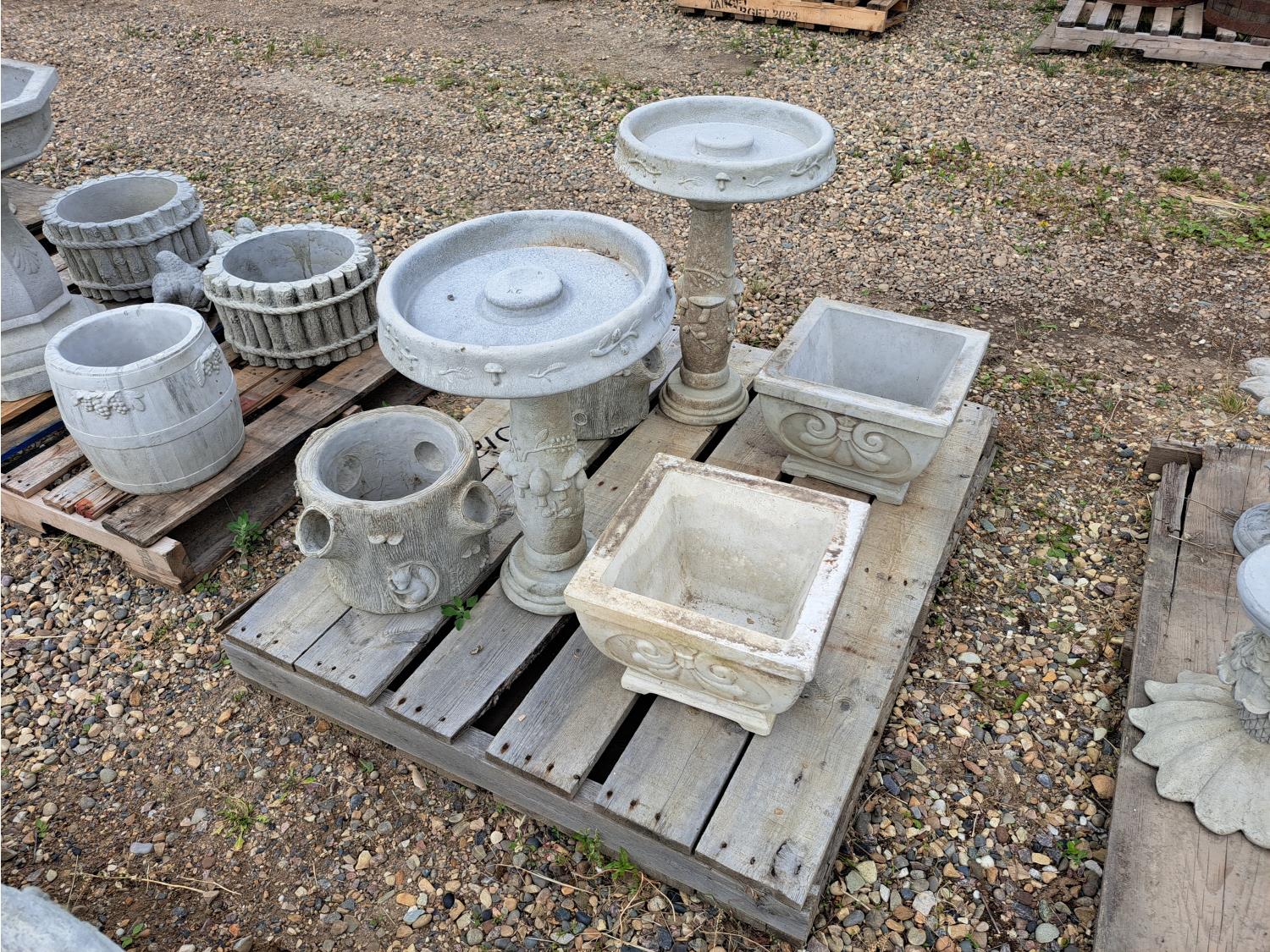 122 Concrete Lawn Decor Bird Bath and Planters (Unused)