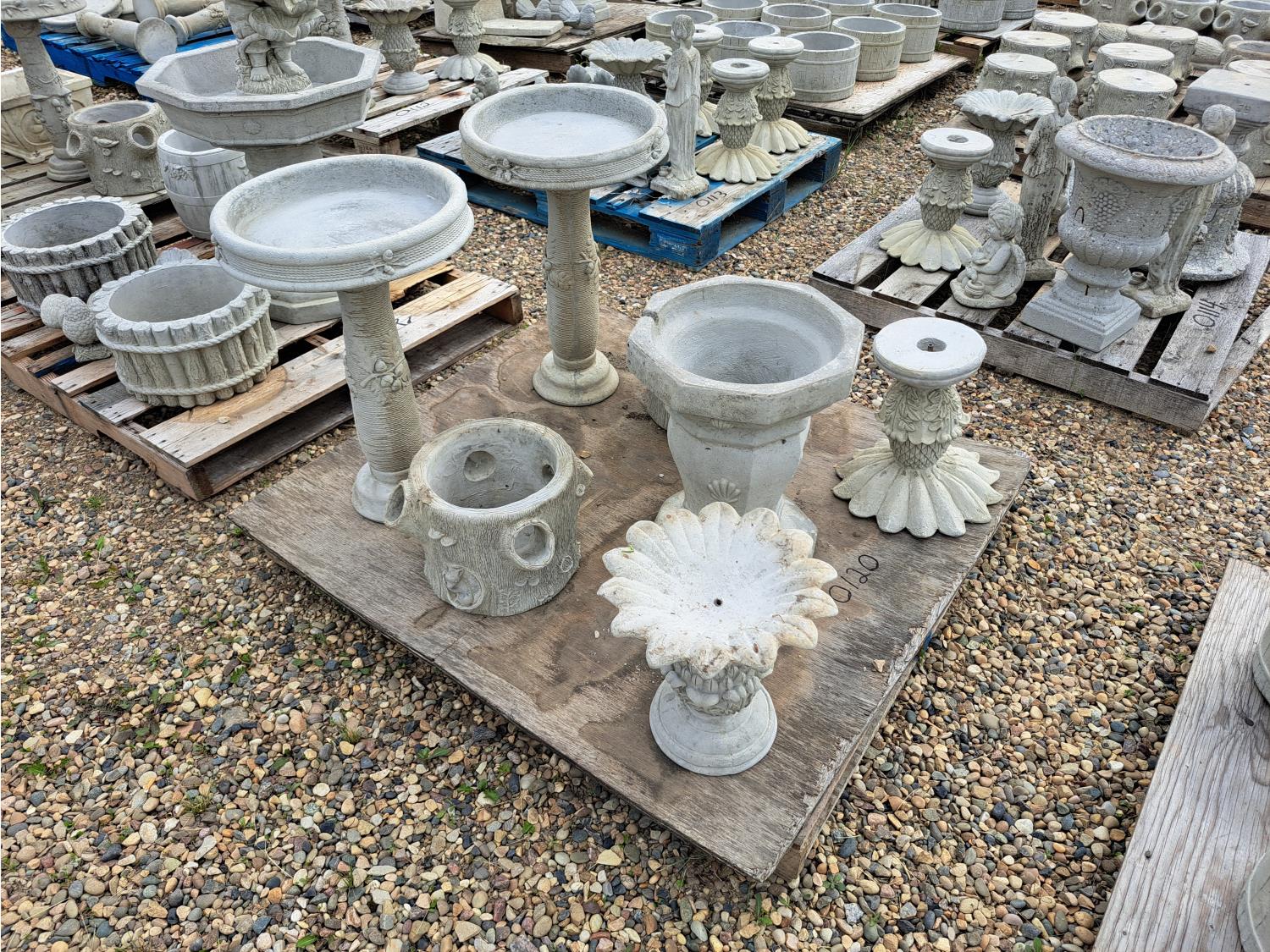 120 Concrete Lawn Decor Bird Bath Planters and Stands (Unused)