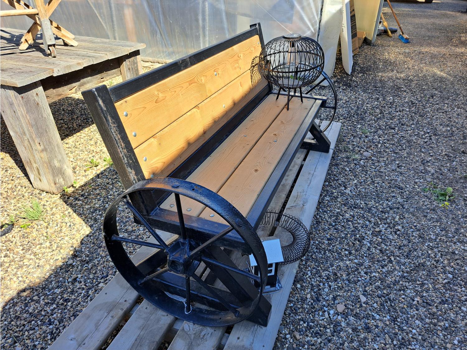 782 Custom Built Iron Framed Bench with Treated Wood
