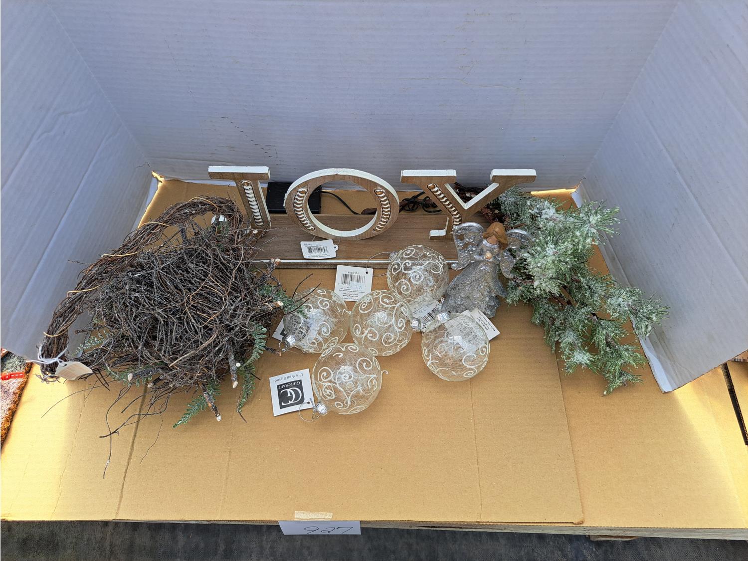 927 Joy Sign, Lighted Branch and Angel Hair Ornaments