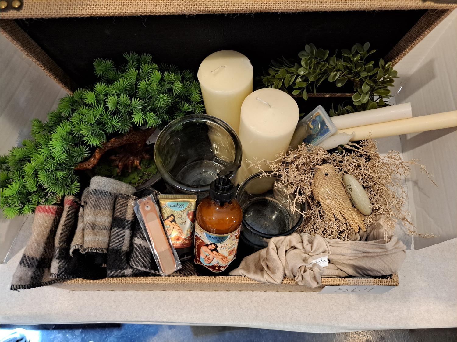 564 Jute Decor Box, Candles and Boot Cuffs (Unused)