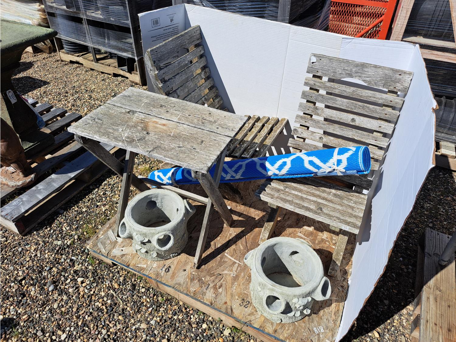 818 Outdoor Rug, Vintage Seating Set and Concrete Pots