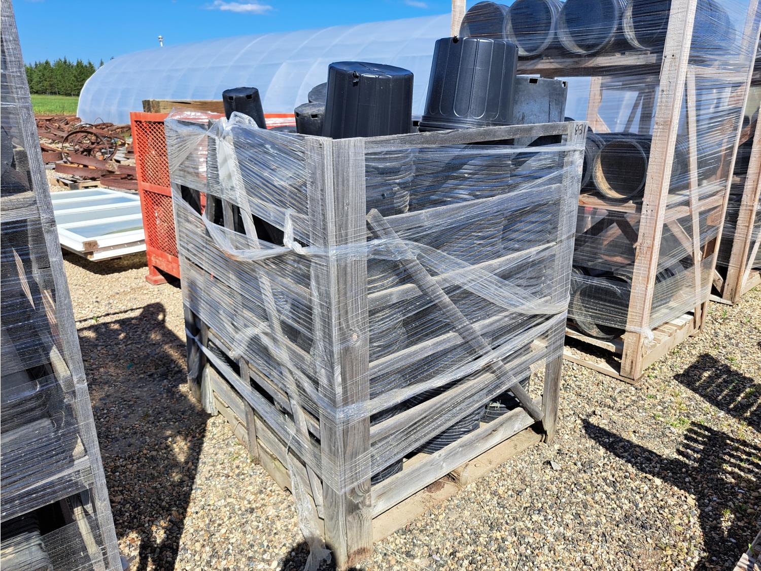 831 Pallet of Assorted Sized Black Plastic Greenhouse Pots