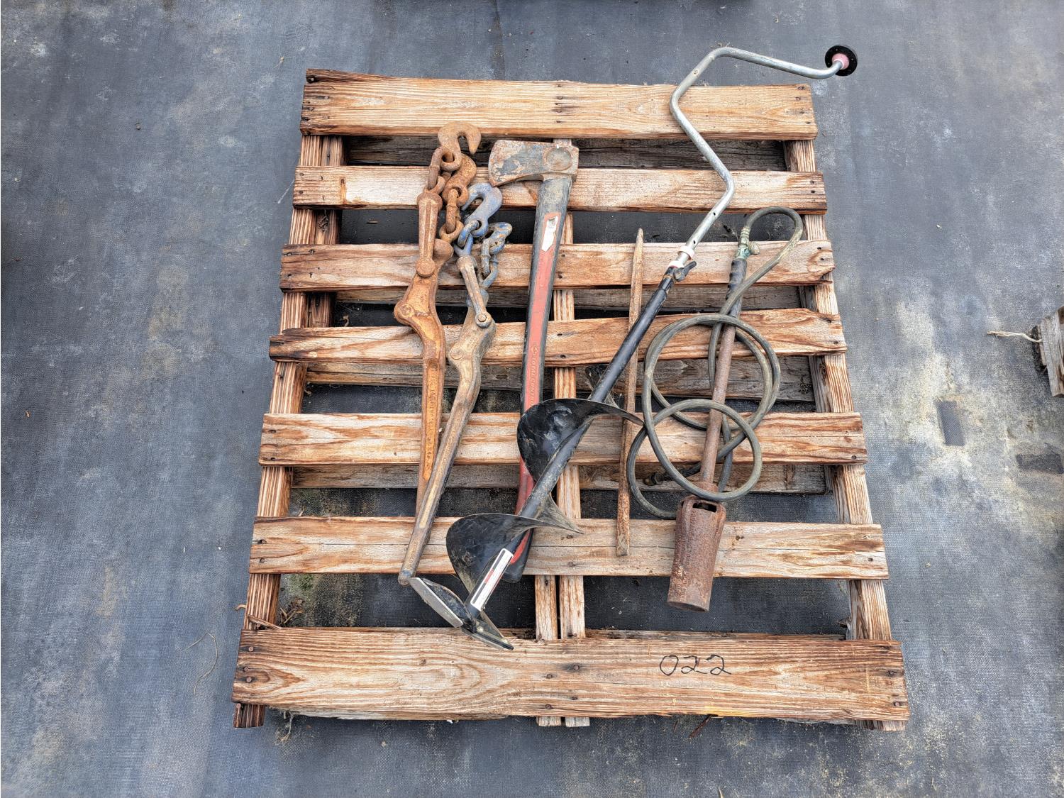 22 Pallet of Boomers, Auger, Axe