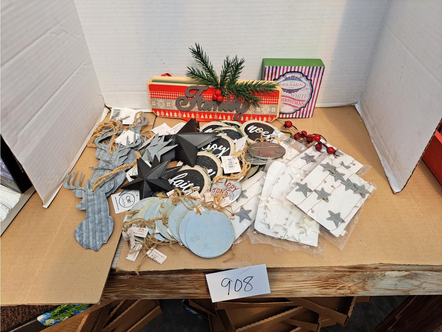 908 Sign, Tin Deer and Stars
