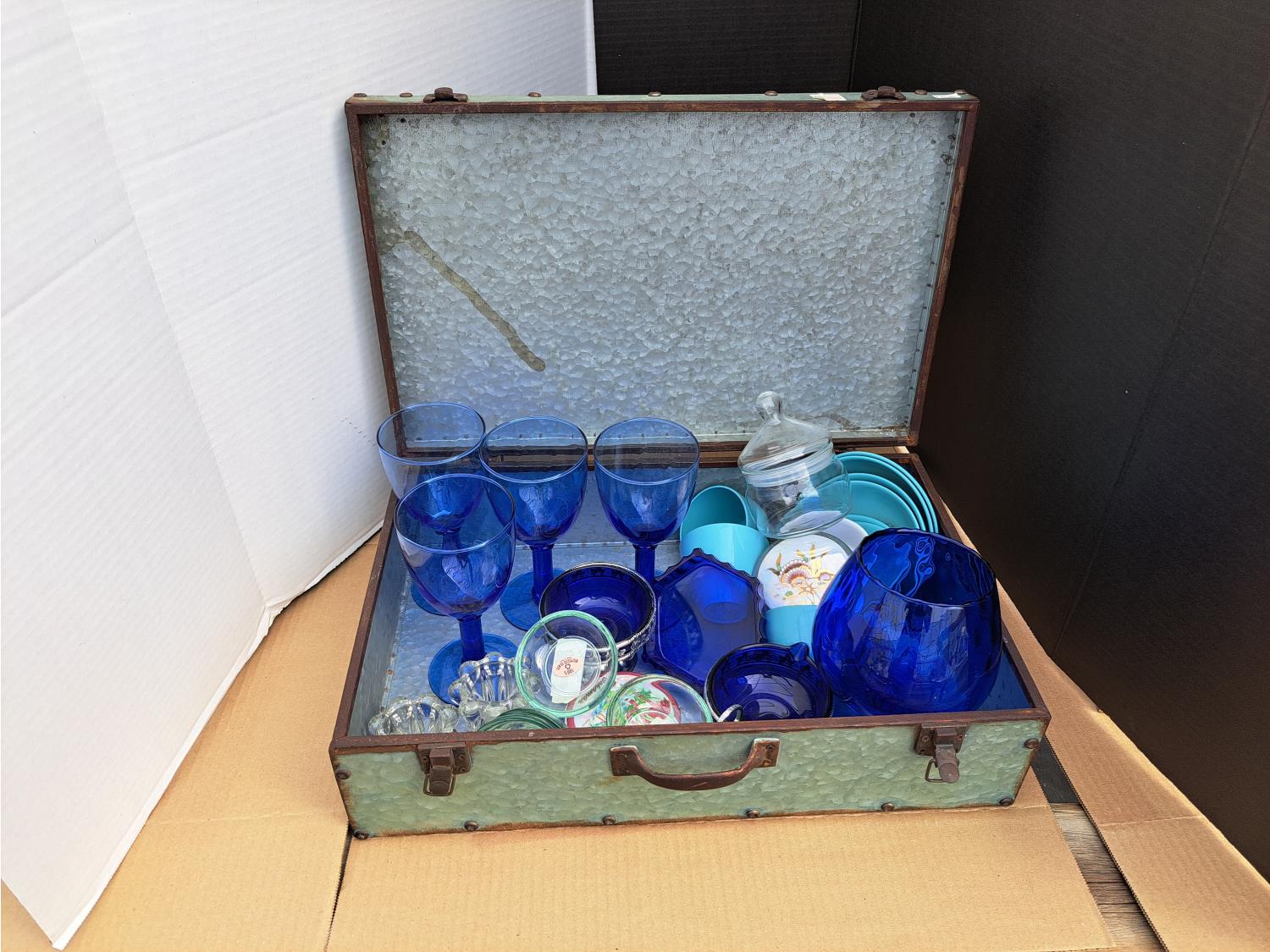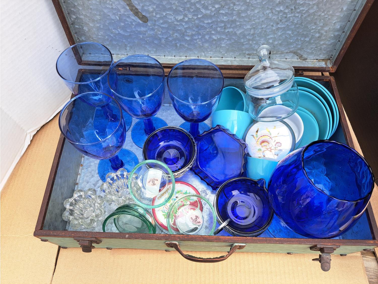 138 Tin Box with Blue Glass Collection