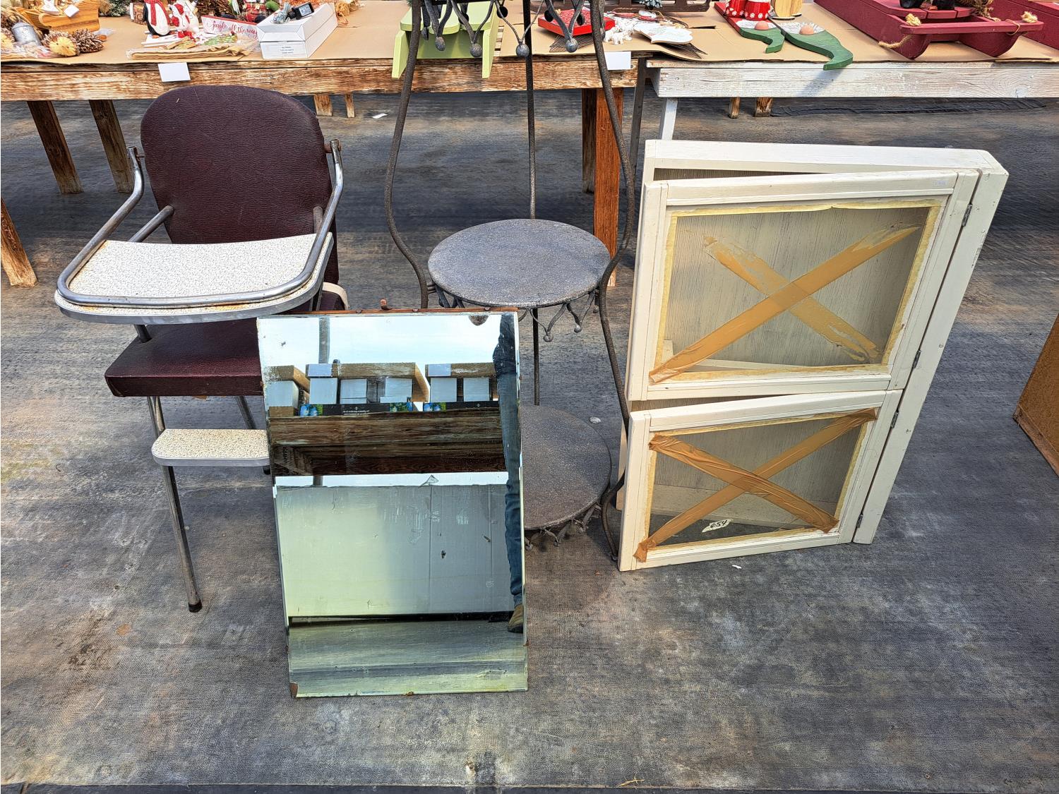 855 Vintage High Chair, Mirror, Shadow Box and Ornament Shelf