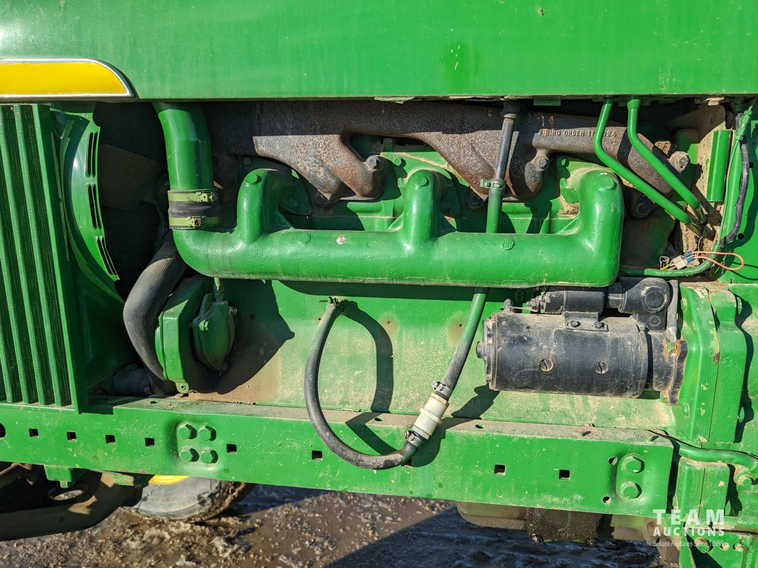6.6 L 6 cylinder diesel engine, 95 PTO HP, 8 speed partial synchro transmission, 540/1000 PTO, 2 rear hydraulic outlets, 10.00-16 front tires, 18.4-34 rear tires