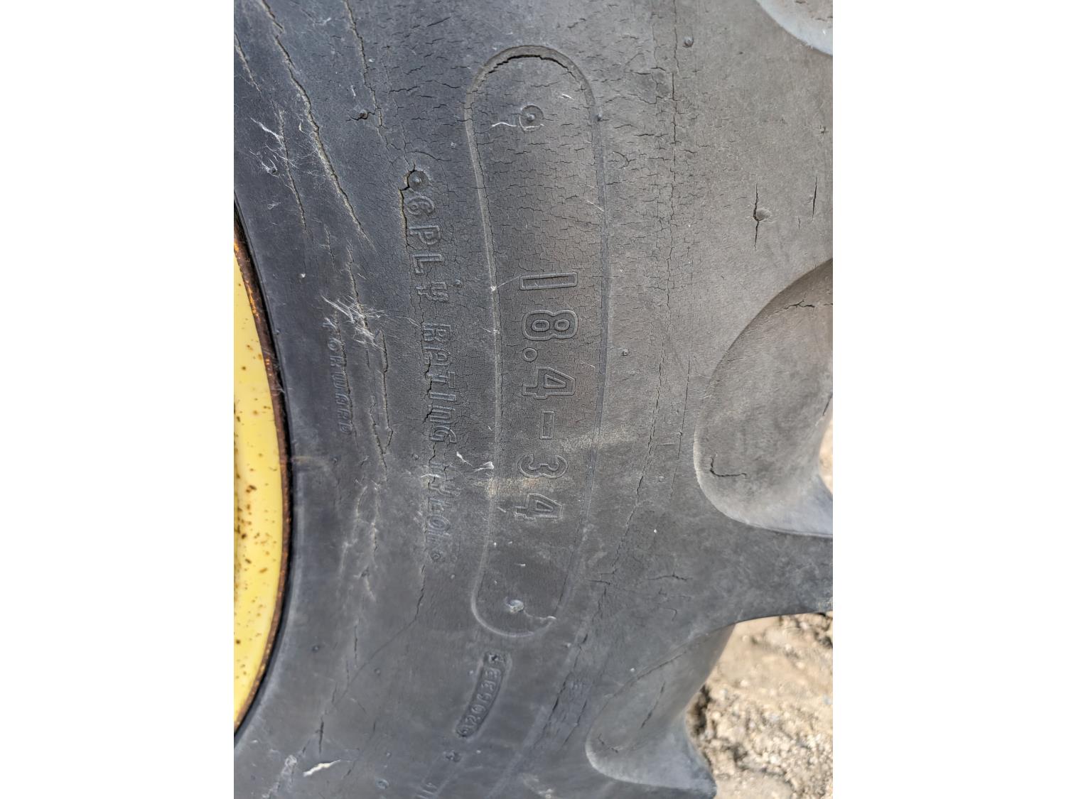 John Deere 46A loader, 6.6 L 6 cylinder diesel engine, 95 PTO HP, 8 speed power shift transmission, cab, 540/1000 PTO, 2 rear hydraulic outlets, rear wheel weights, 7.50-18 front tires, 18.4-34 rear tires
