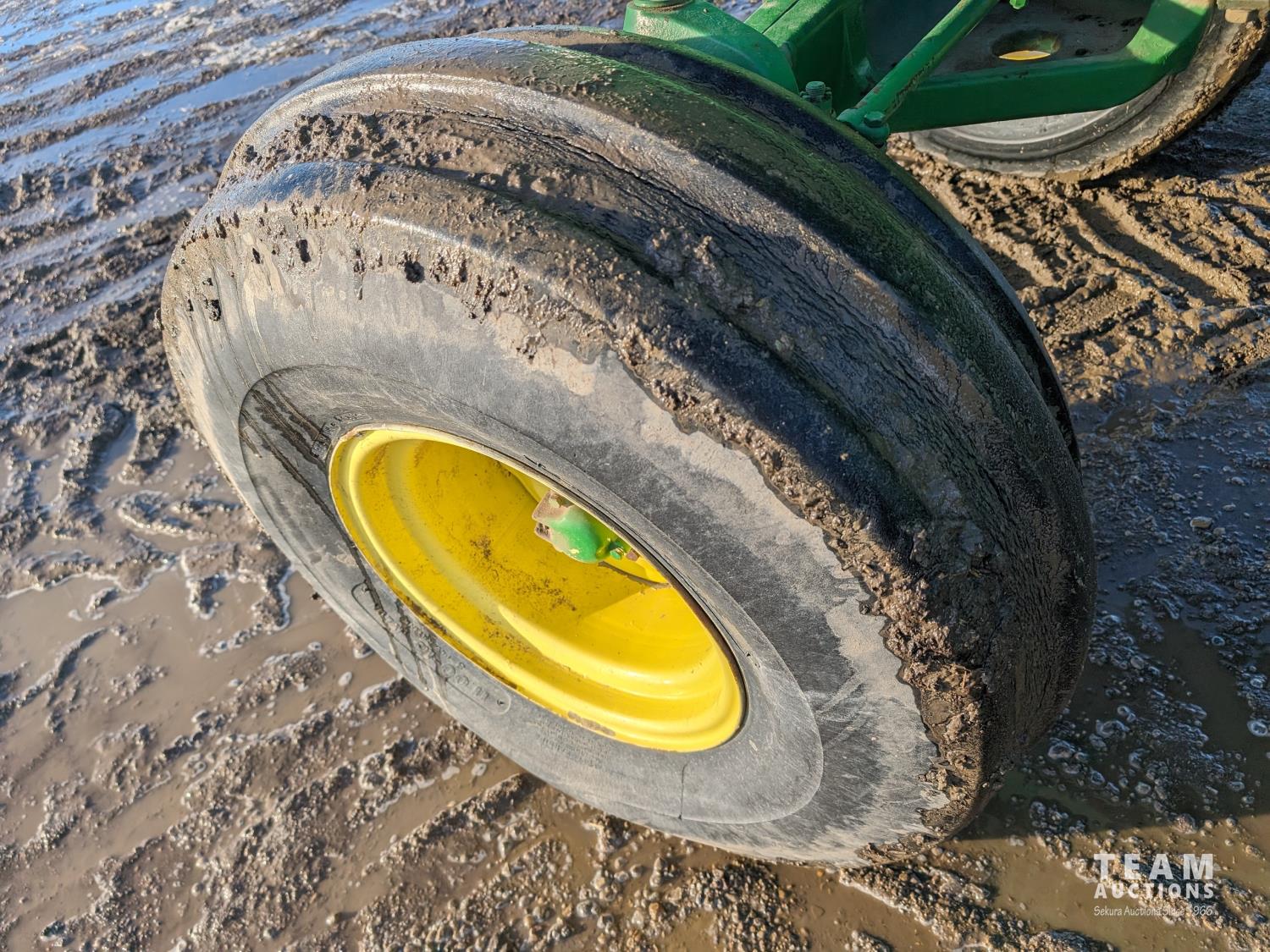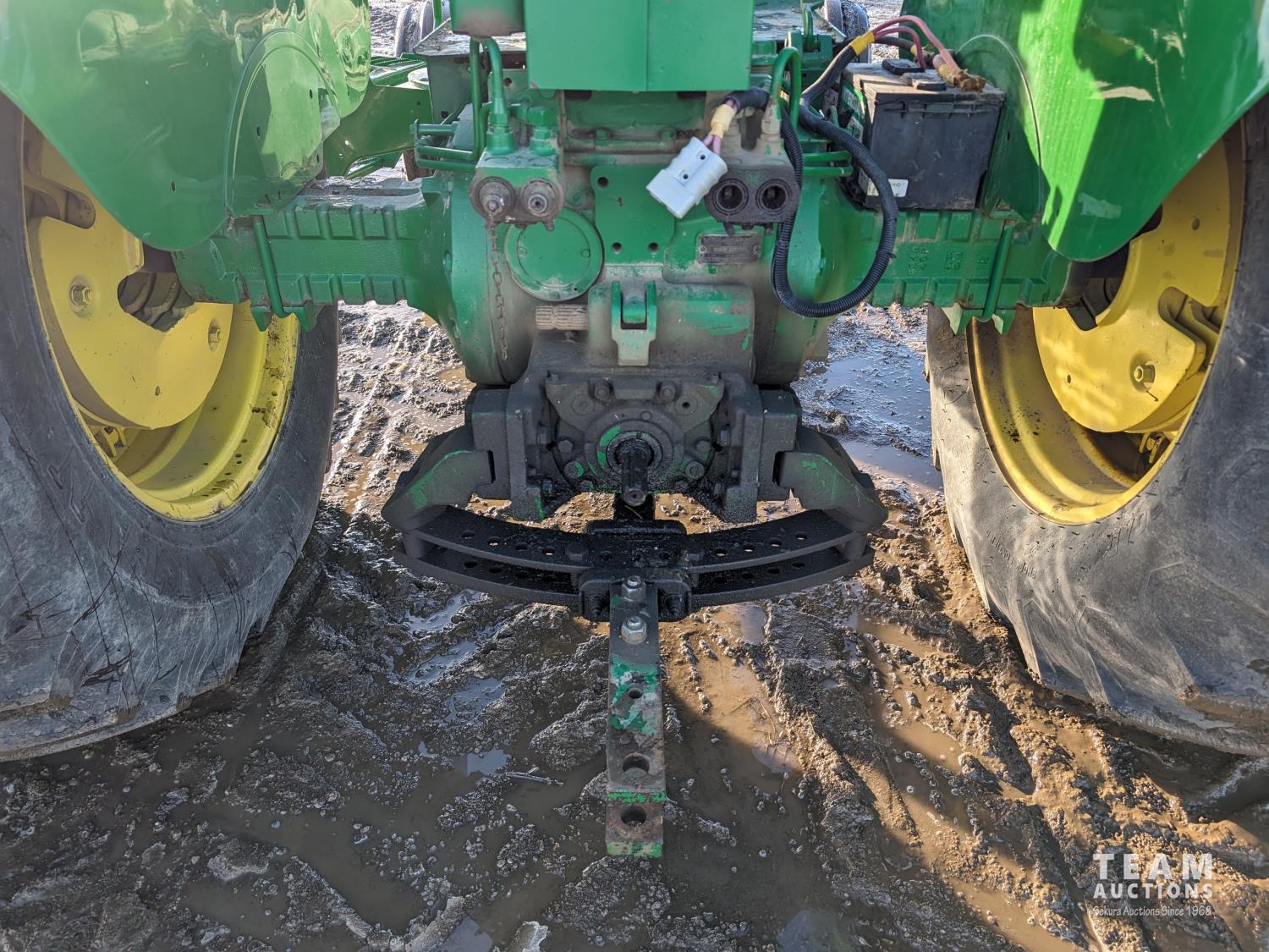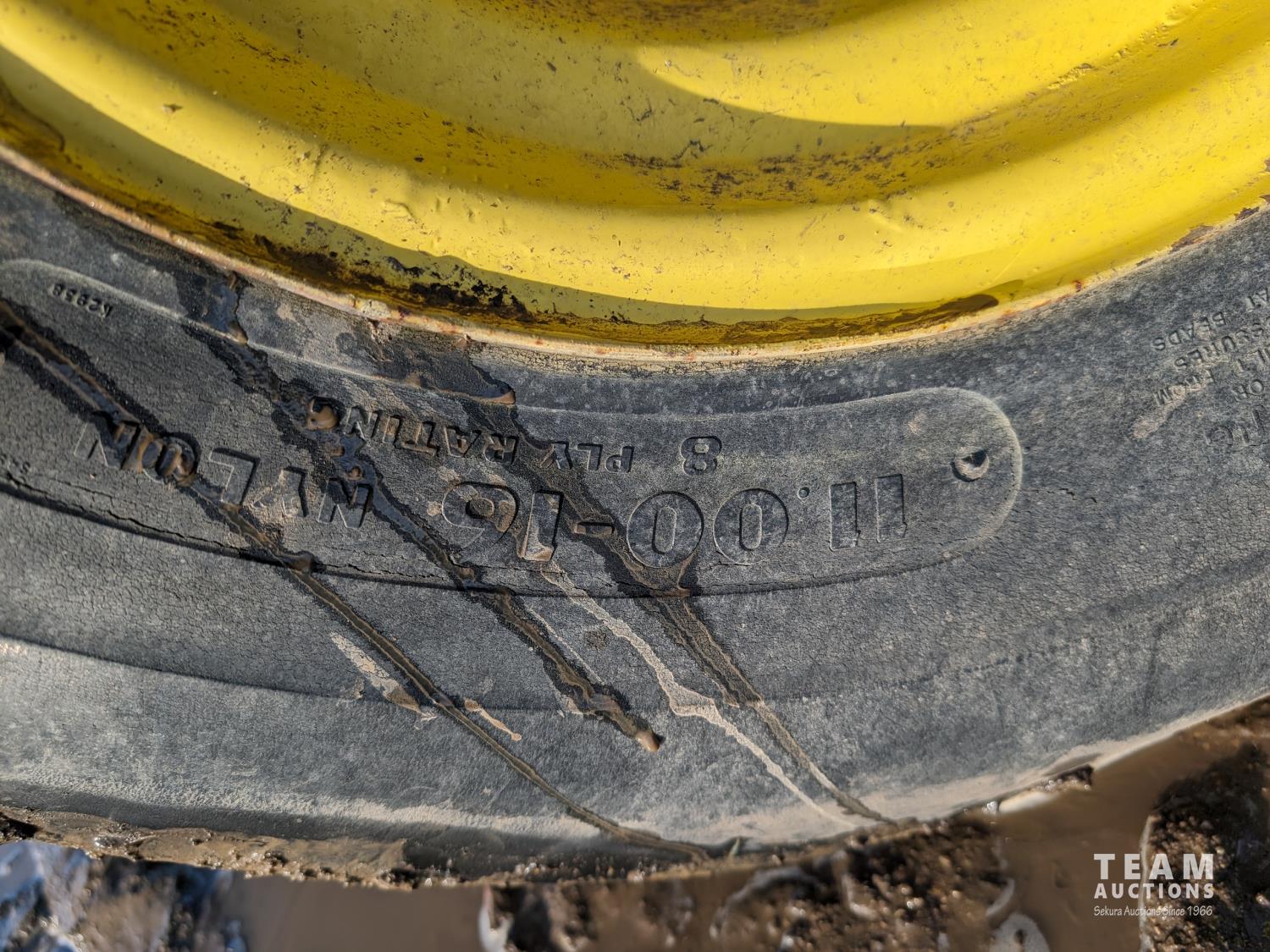 6.6 L 6 cylinder diesel engine, 95 PTO HP, 8 speed power shift transmission, 540/1000 PTO, 2 rear hydraulic outlets, 11.00-16 front tires, 18.4-34 dual rear tires, bolt on duals