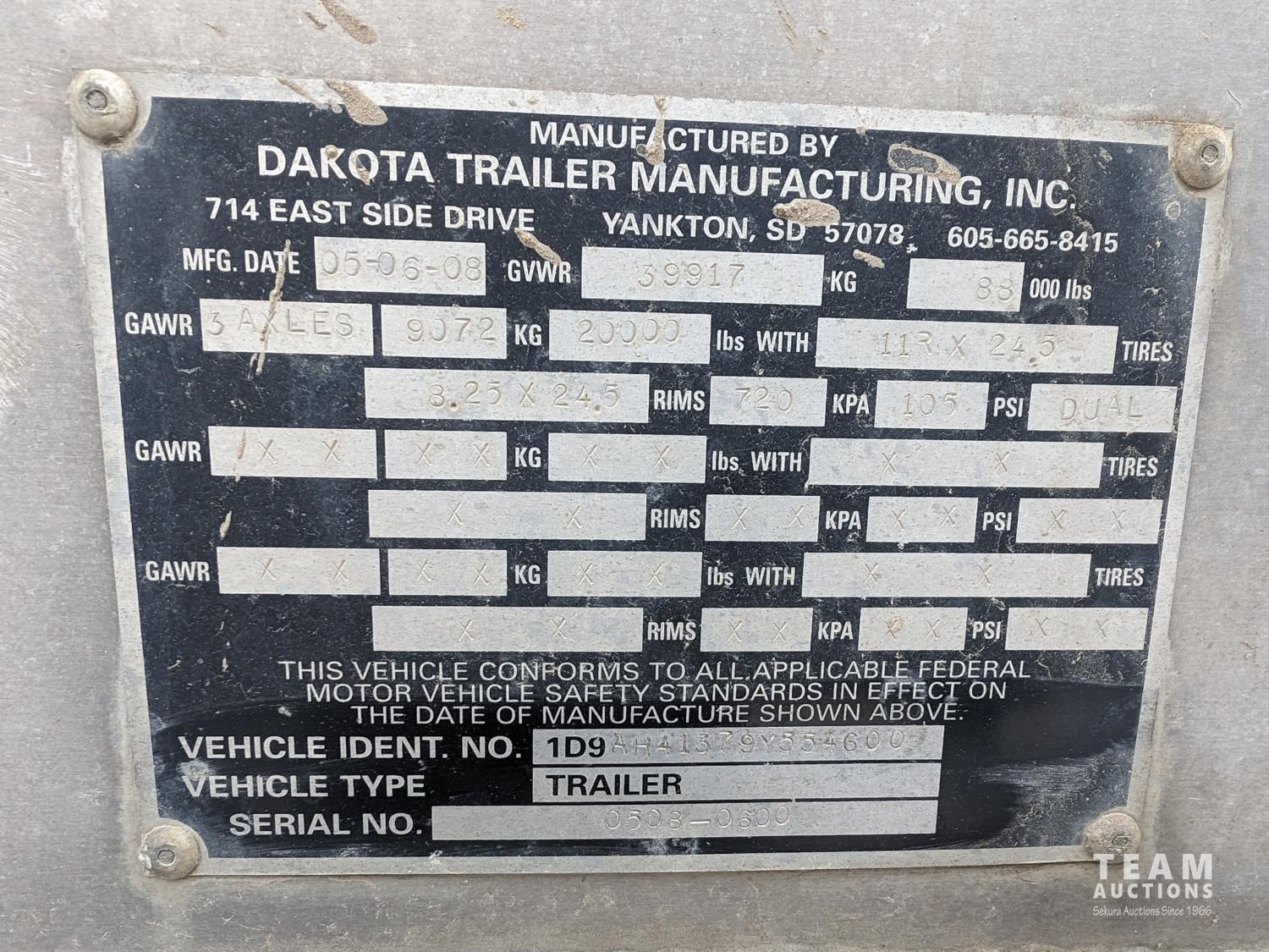 122 2009 Dakota 41 Ft TRI/A Aluminum Grain Trailer