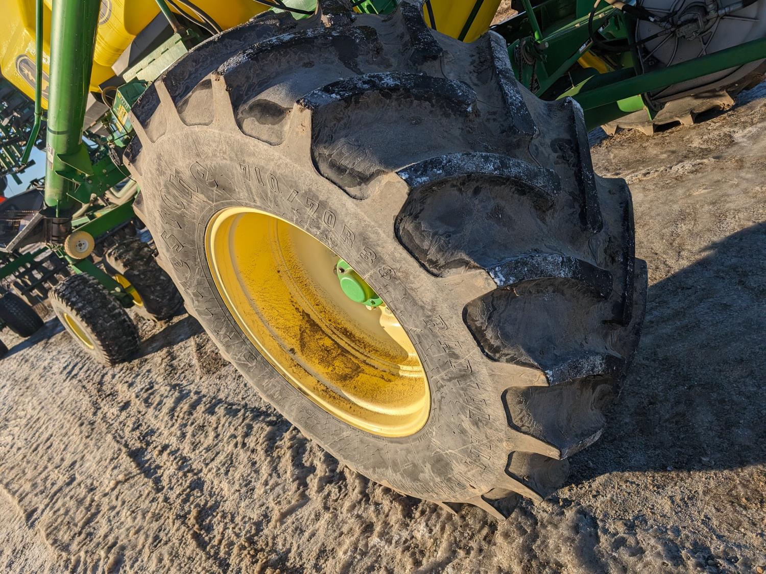 10 inch spacing, double shoot Dutch openers, 4 inch rubber packers, blockage sensors, 6 rollers, Air Cart: 3 compartments, loading auger, single fan, 5 section, 31x13.50-15SL, 16.5L-16SL front tires, 16.5L-16SL rear tires