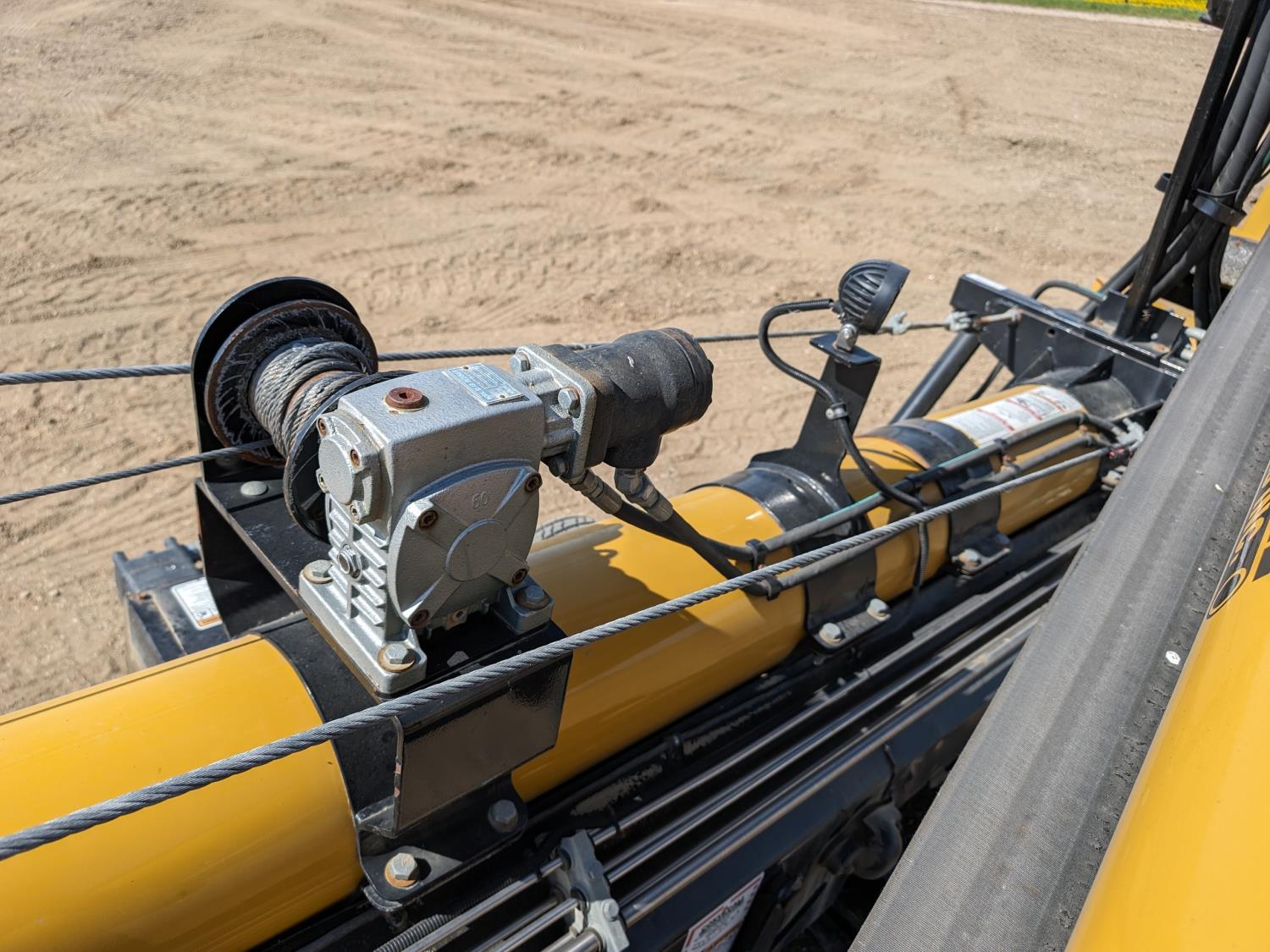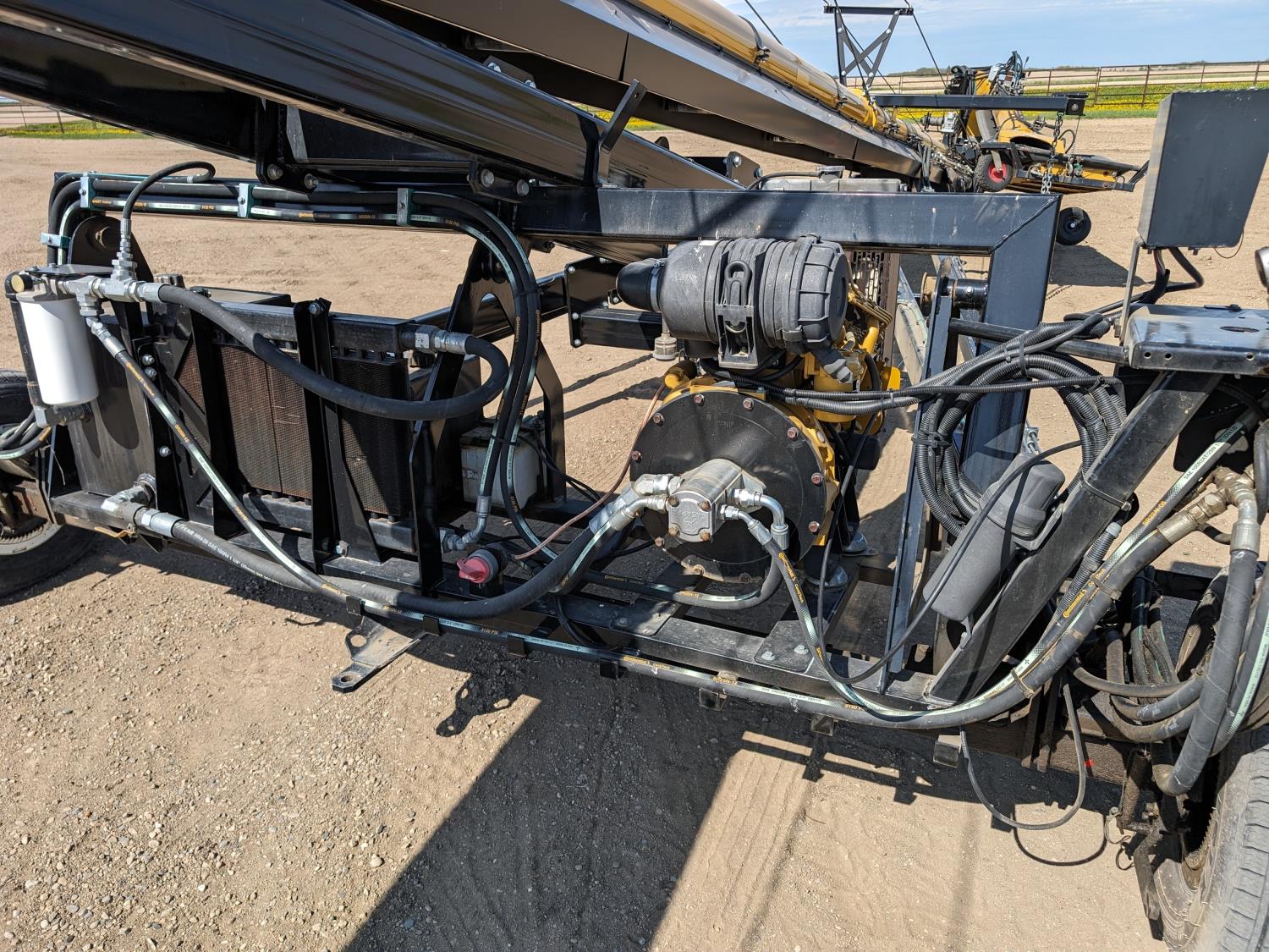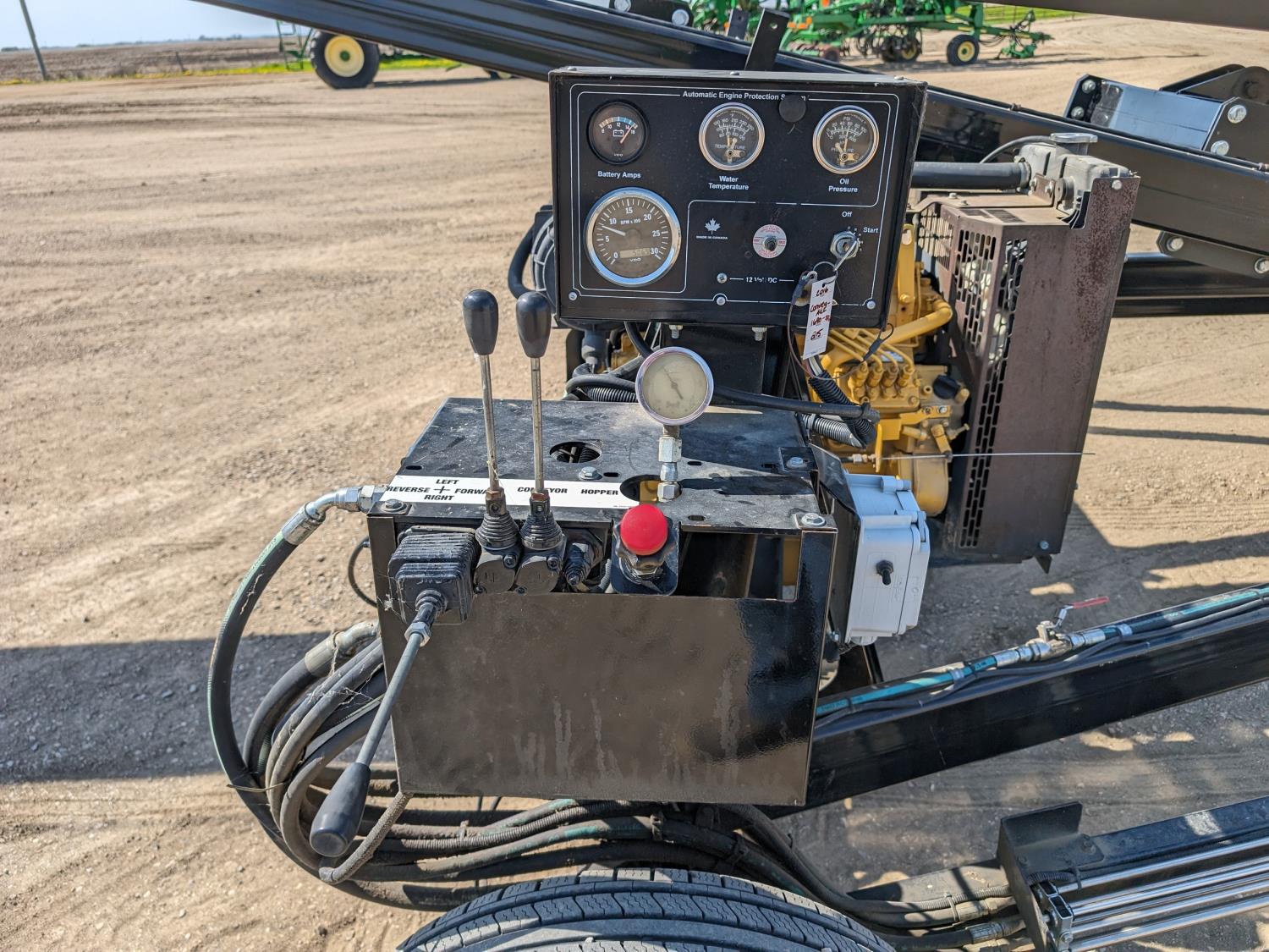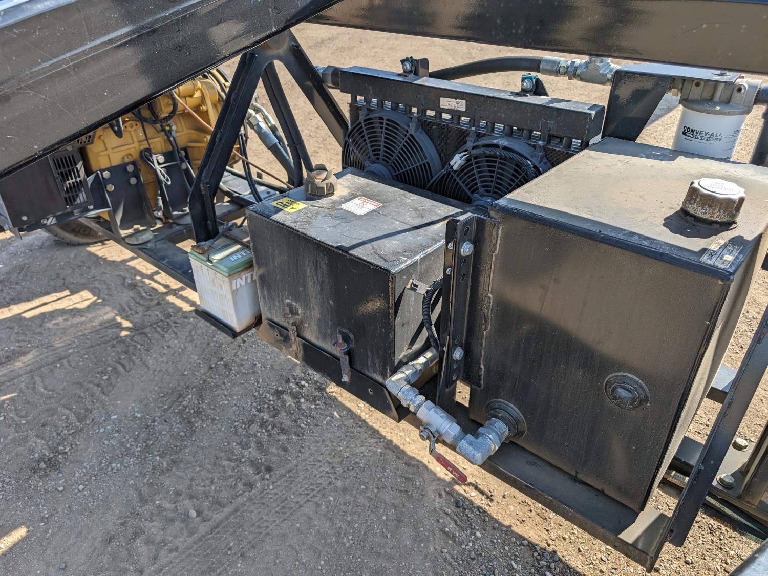 Caterpillar 67 HP electric start diesel engine, hydraulic swing transfer drive, swing hydraulic winch, hydraulic conveyor mover, flex spout, work lights, reverser, hydraulic lift