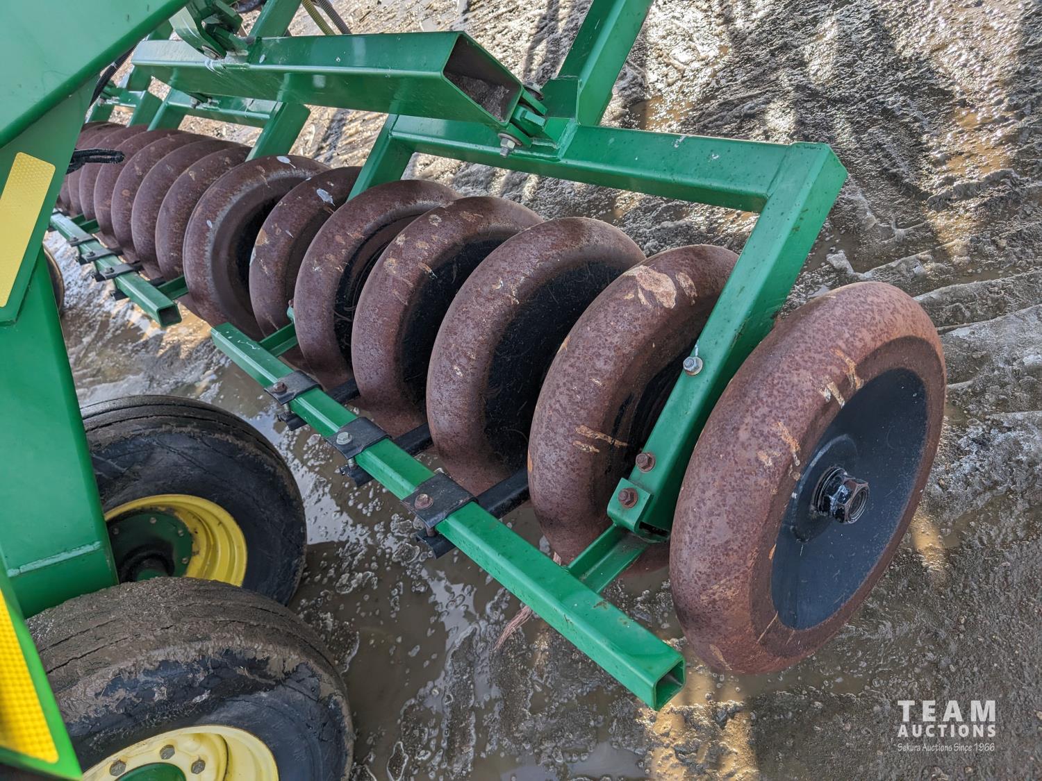 10 inch spacing, double shoot Atom Jet openers, 4 inch steel packers, Packer scrapers, 5 sections, 11L-15 tires