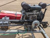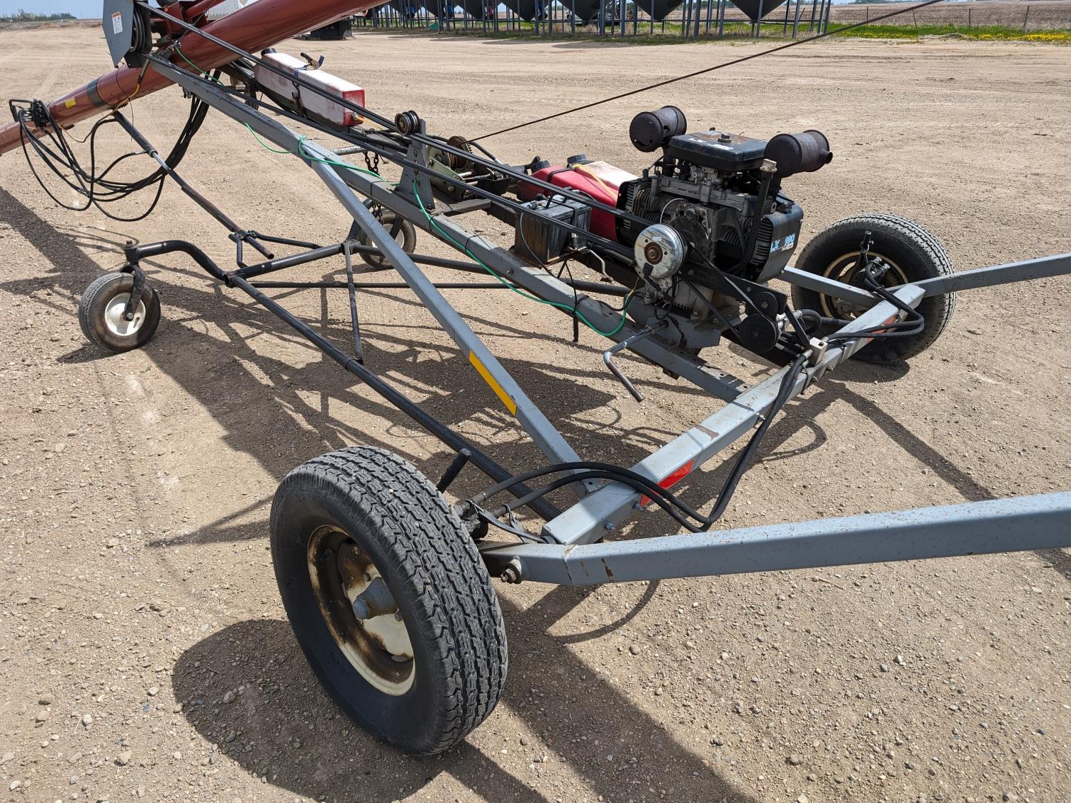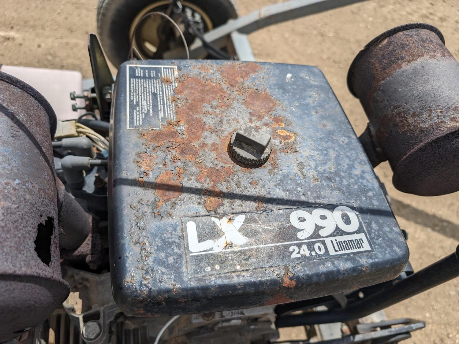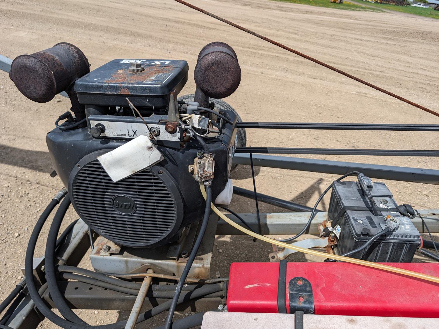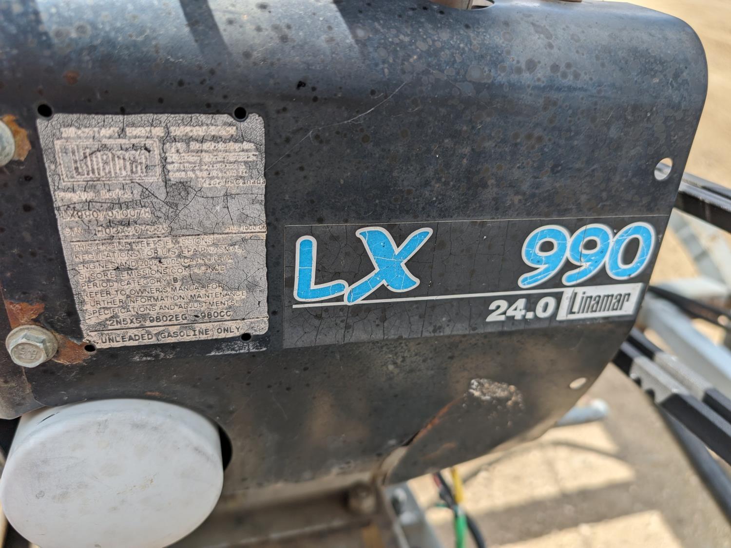 Onan Linmar LX990 24 HP electric start gas engine, drive clutch, hydraulic lift, flex spout, work lights, hydraulic auger mover, 225/75R15 tires