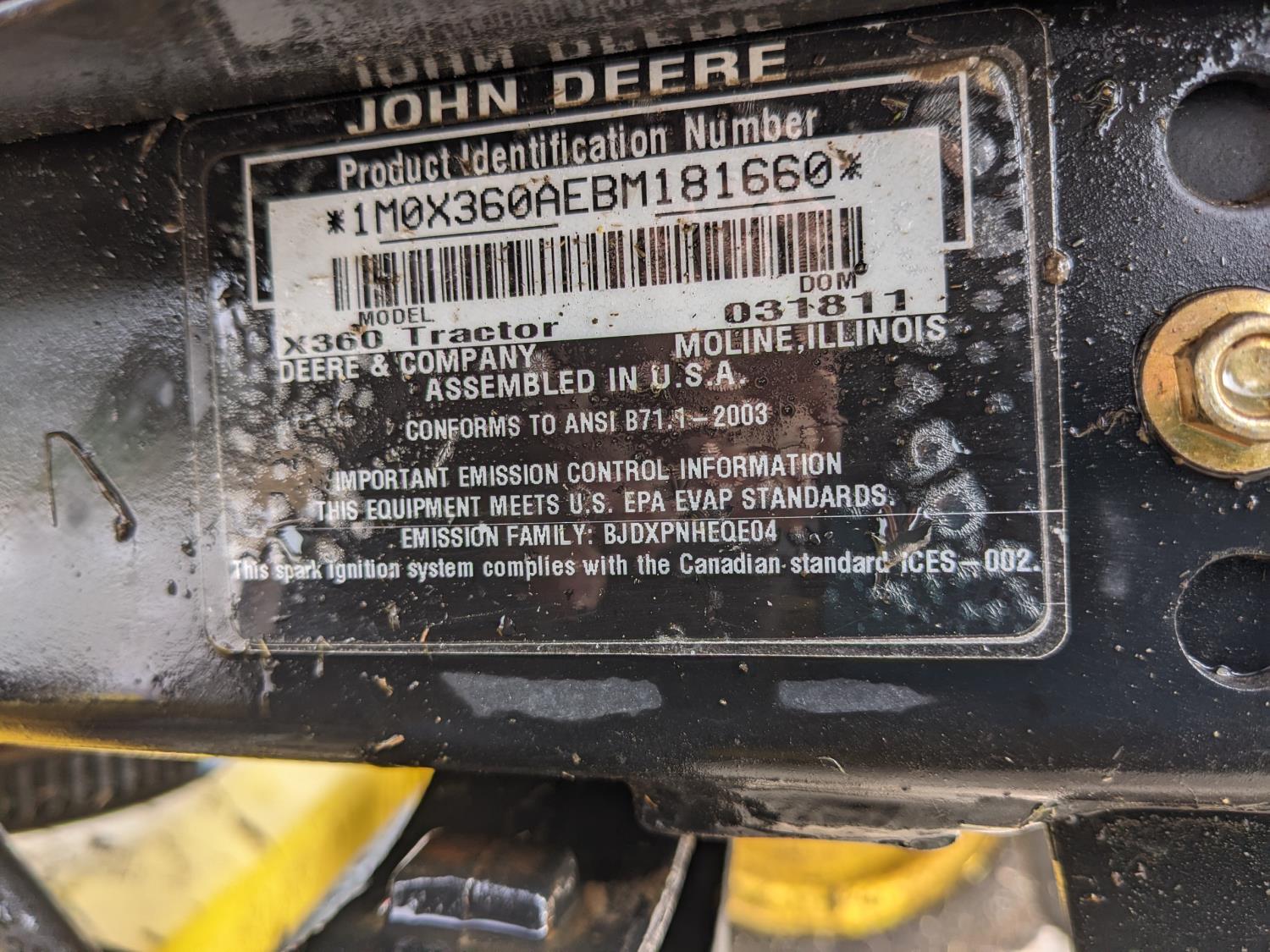 64 2011 John Deere X360 Ride On Lawn Mower