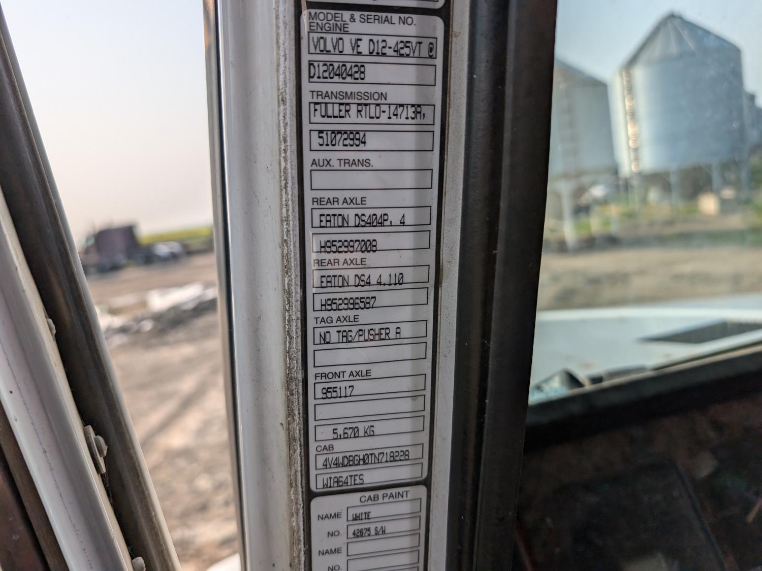 Volvo VED12-425VT 12.1 L 6 cylinder 425 HP diesel engine, engine brake, Eaton Fuller RTLO-14713A 13 speed manual transmission, mid rise 48 inch sleeper, A/C, cruise control, air ride driver seat, 12,000 lb front axle, 40,000 lb rear axles, 213 inch WB, 11R24.5 tires