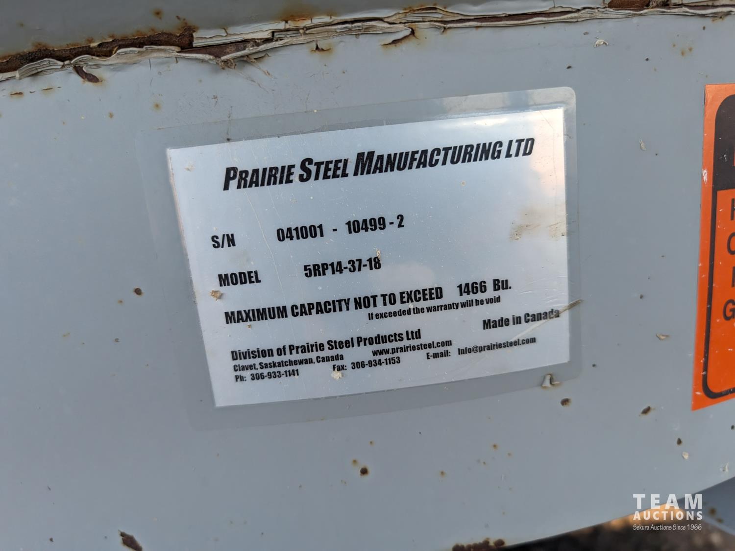3,743± bu capacity, Prairie Steel Products 8 leg hopper, ladder, lid opener
