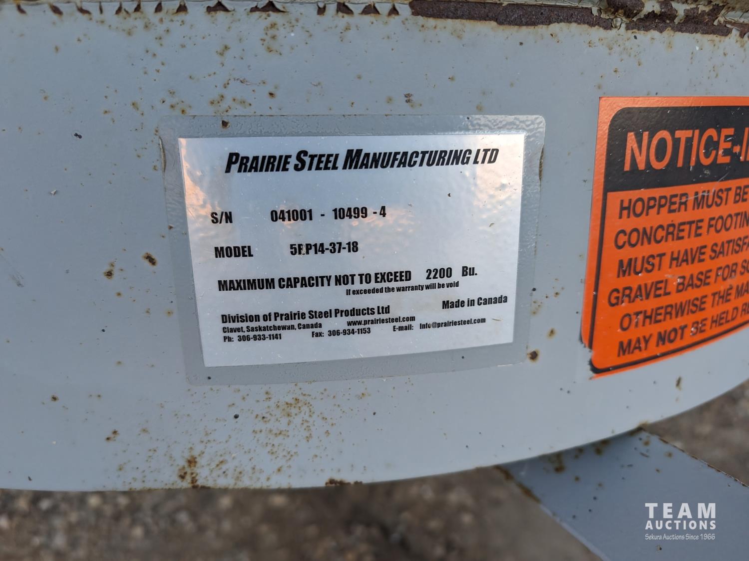 3,743± bu capacity, Prairie Steel Products 8 leg hopper