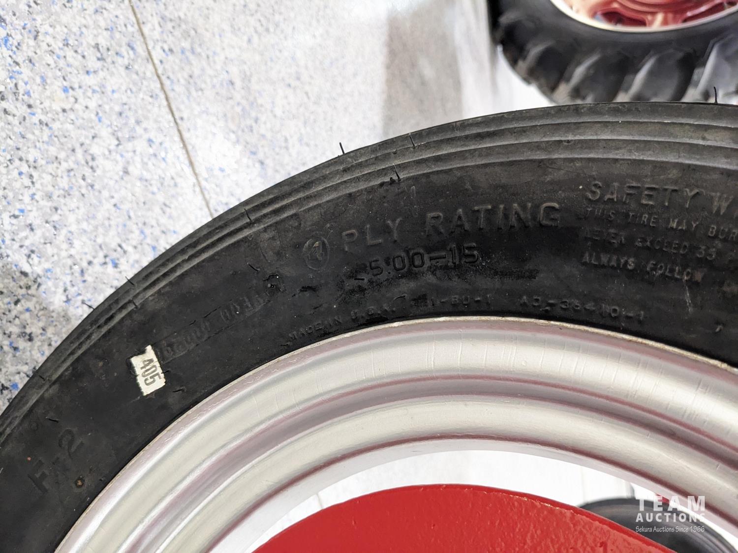 4 cylinder gas engine, 4 speed transmission, 540 PTO, belt pulley, rear weights, 5.00-15 front, 12.4-36 rear tires (all new front and rear tires)