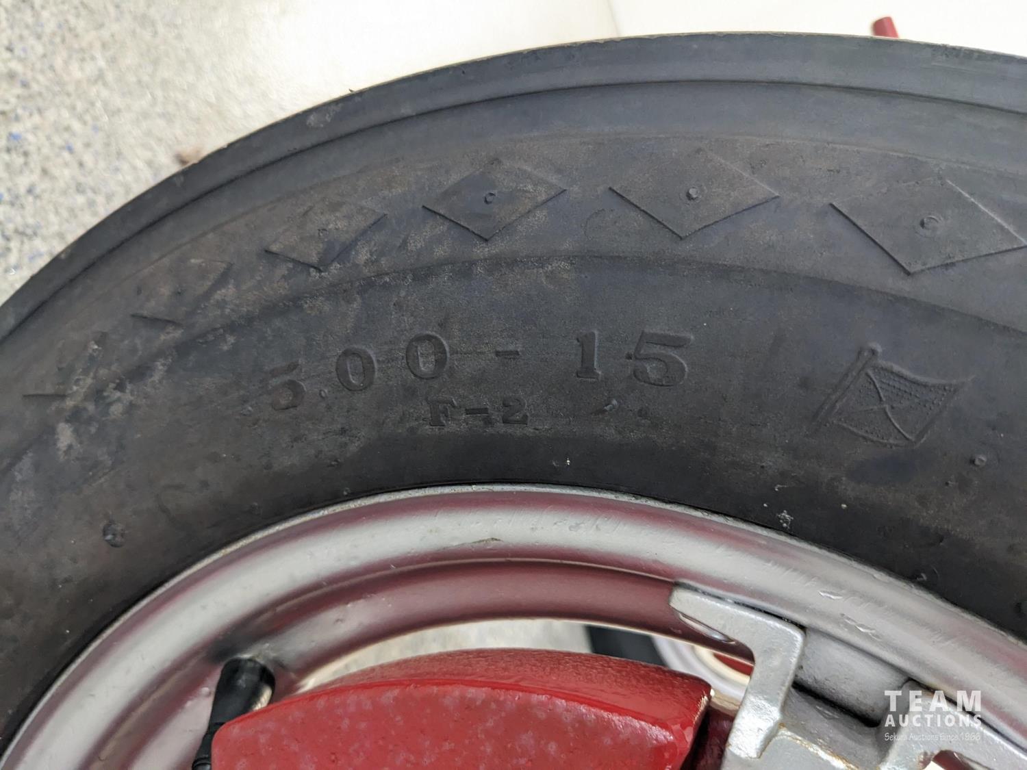 4 Cylinder gas engine, 4 speed transmission, 540 PTO, belt pulley, rear wheel weights, 5.00-15 front, 11.2-24 rear tires (all new front and rear tires)