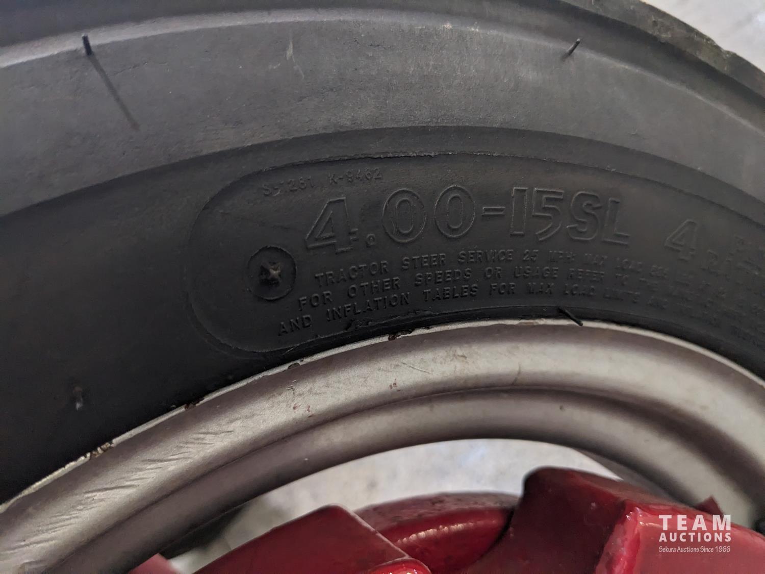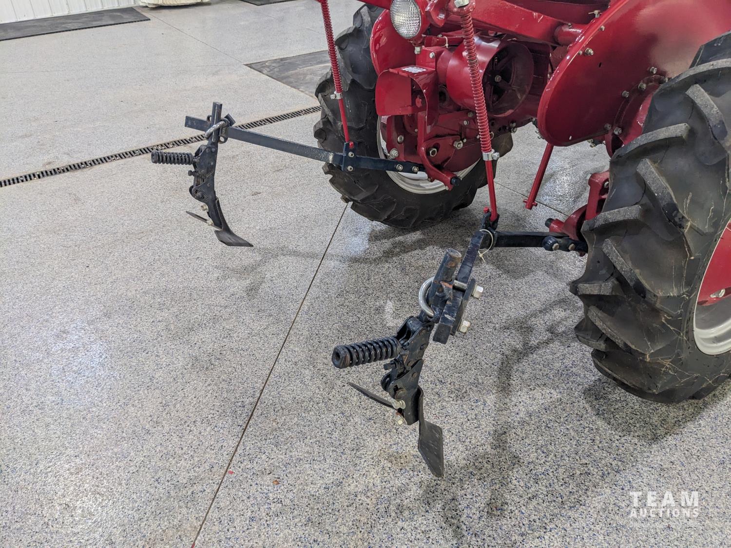 4 Cylinder gas engine, 4 speed transmission, 540 PTO, belt pulley, touch control hydraulic system, hydraulic lift cultivator, front and rear wheel weights, drawbar comes with tractor, 4.00-15 front, 9.5-24 rear tires (all new front and rear tires)