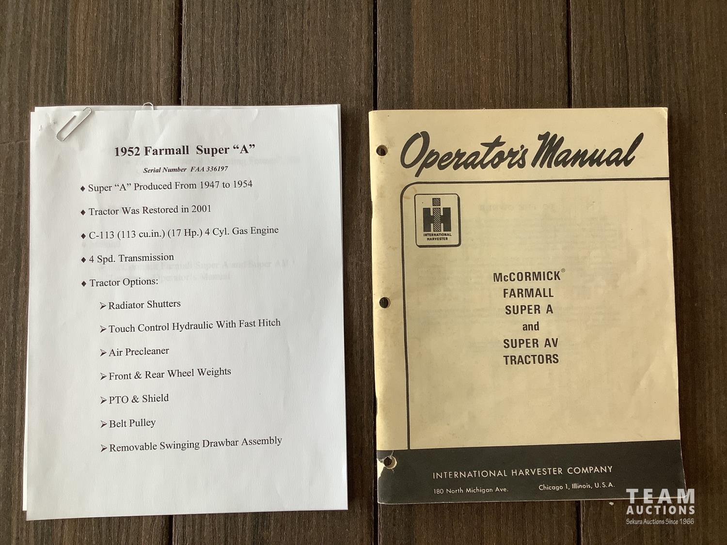27 1952 McCormick Farmall Super A 2WD Antique Tractor