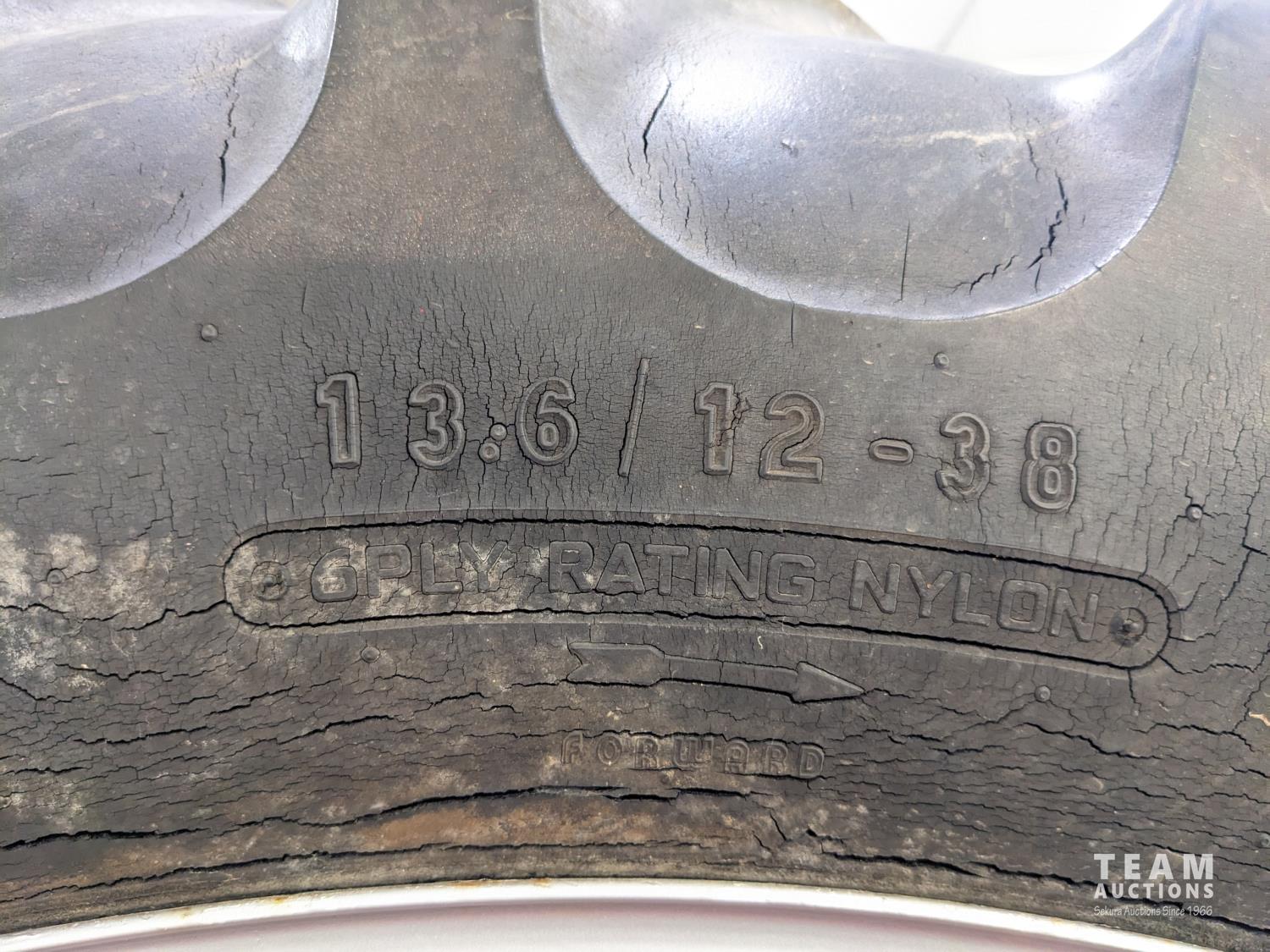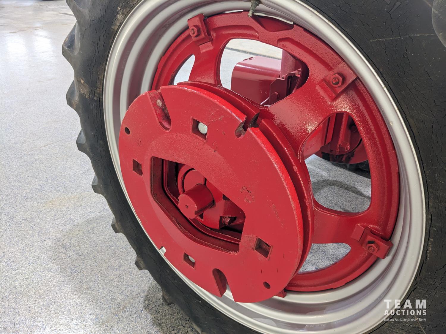 4 cylinder gas engine, 5 speed transmission, 540 PTO, belt pulley, rear wheel weights, 6.00-16 front, 13.6/12-38 rear tires