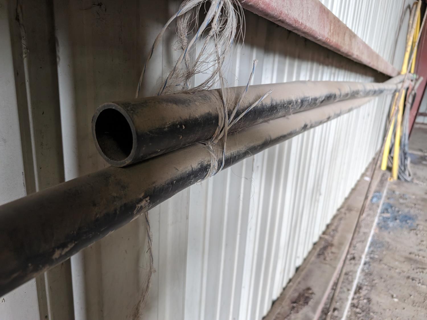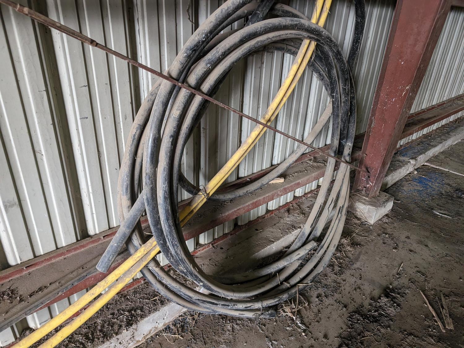 (2) lengths of poly pipe, roll of 1-1/2 poly pipe