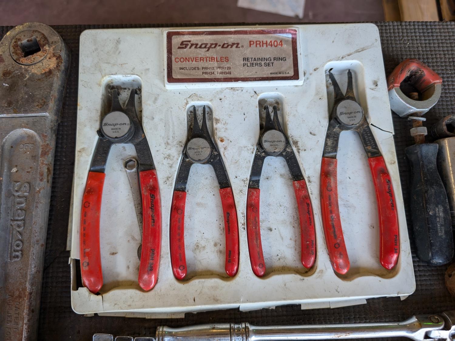snap ring pliers set, work light, wrenches, sockets