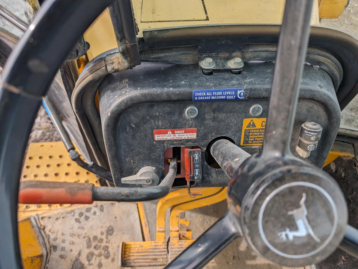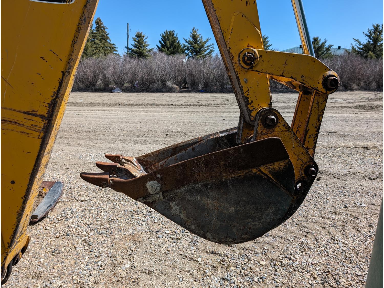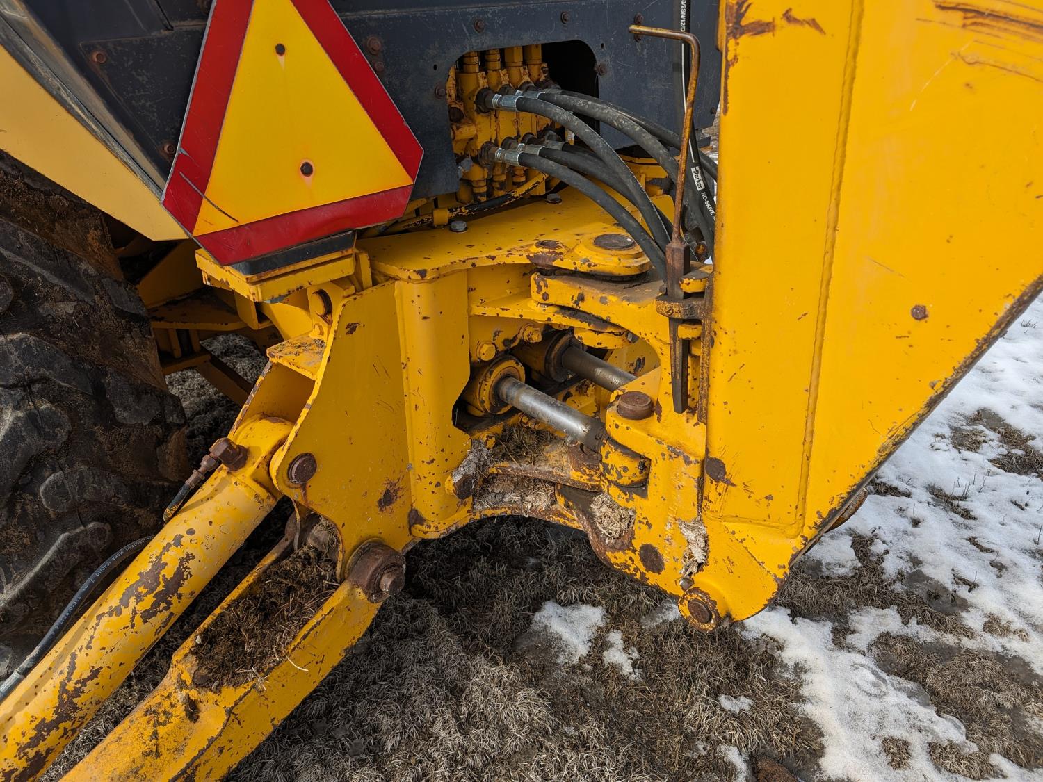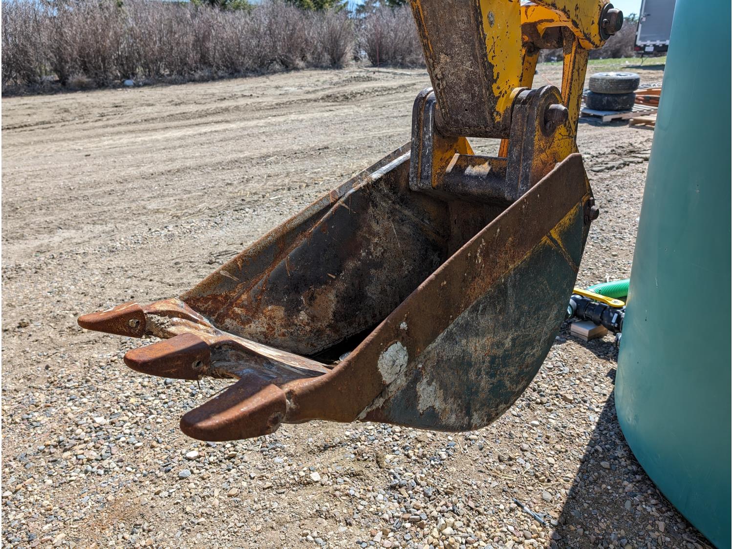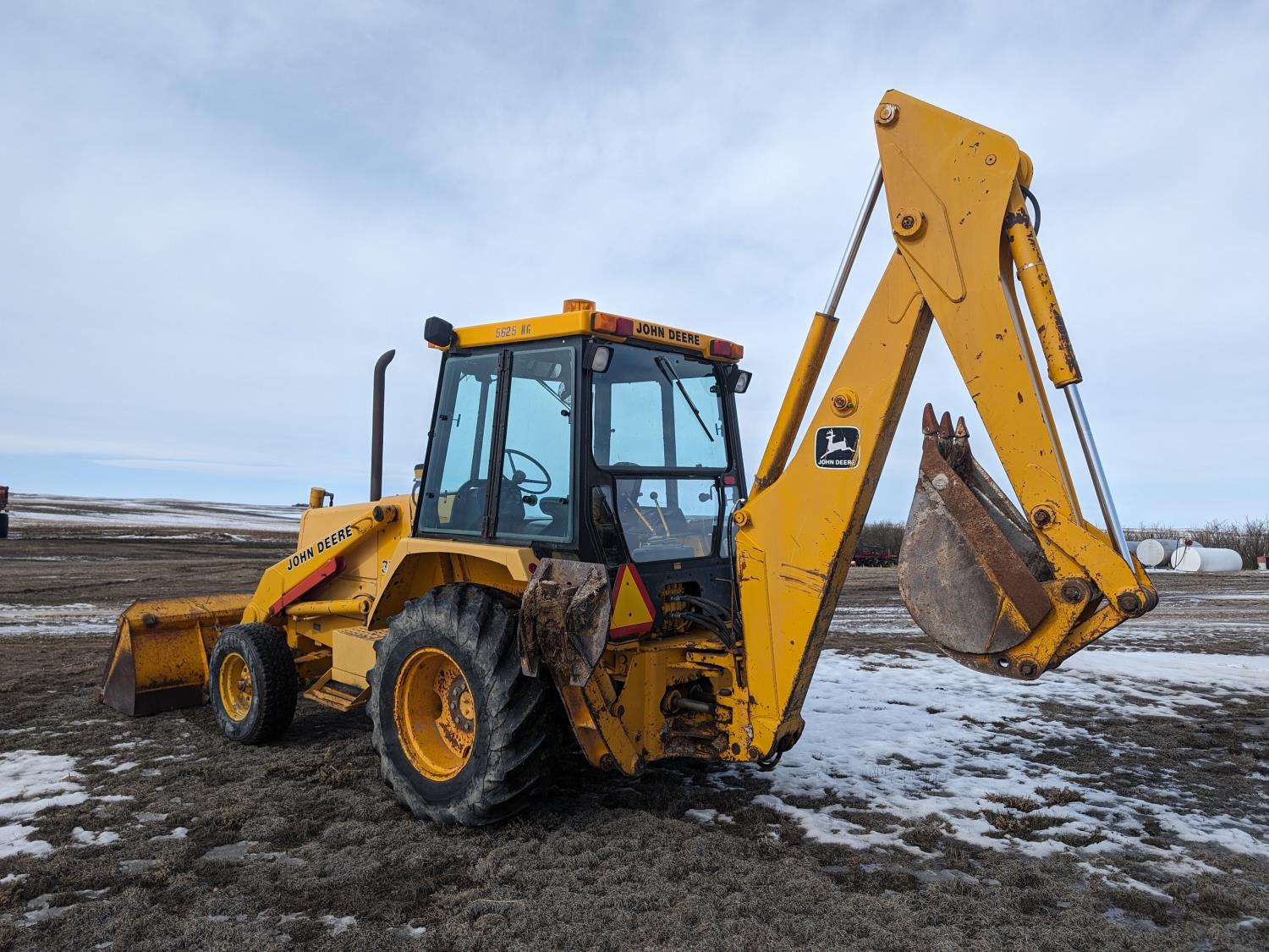 Enclosed cab, manual transmission, 92 inch loader bucket, 18 inch dig backhoe bucket, outriggers, 265/75R16 front tires, 16.9-24 rear tires