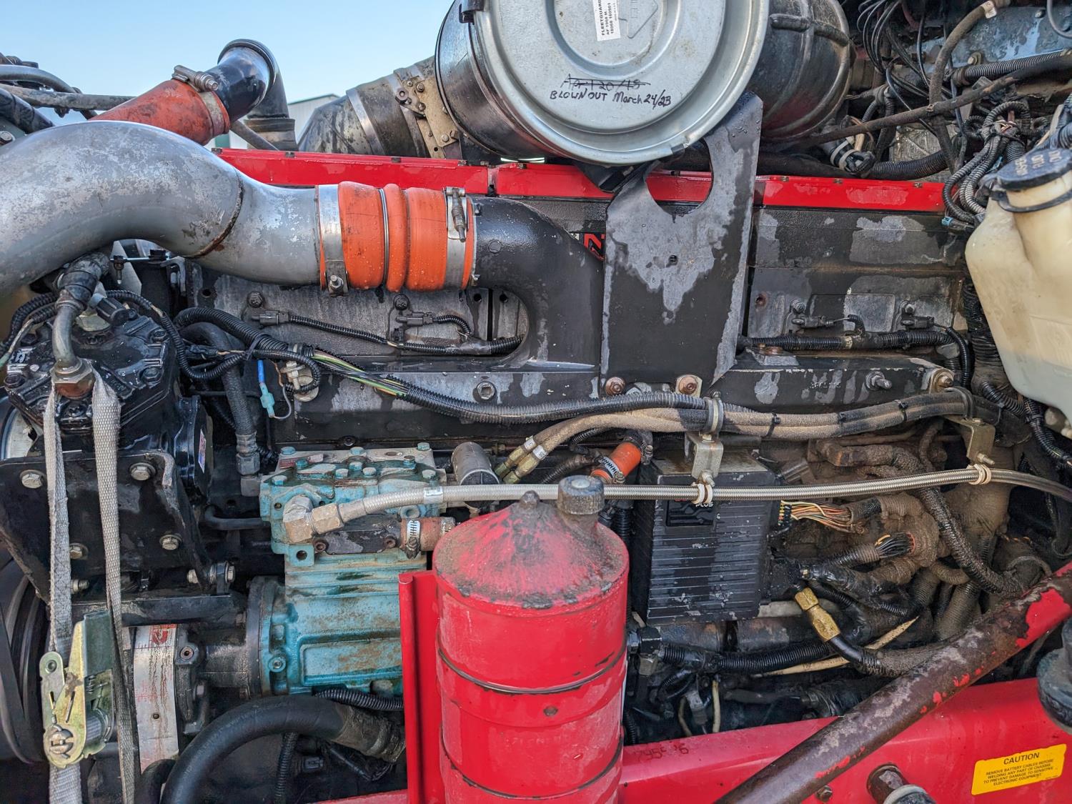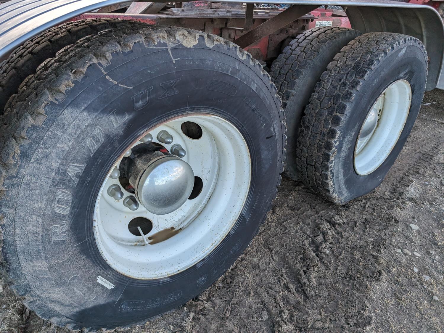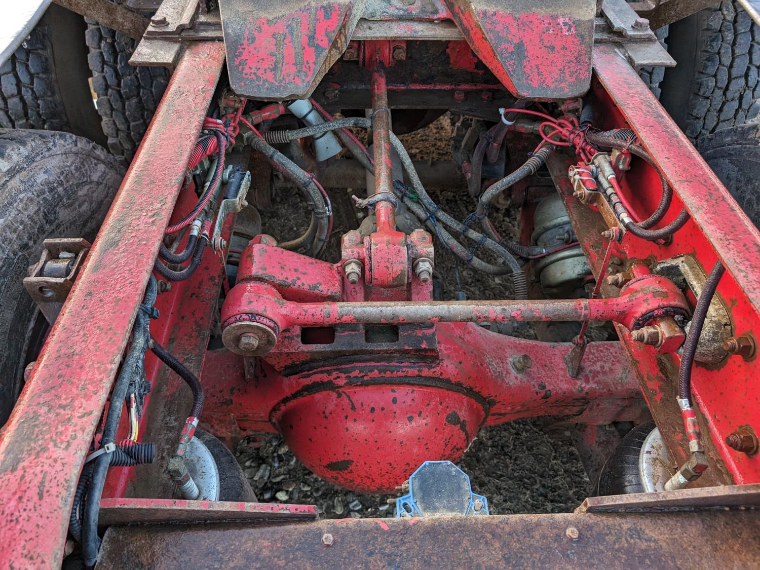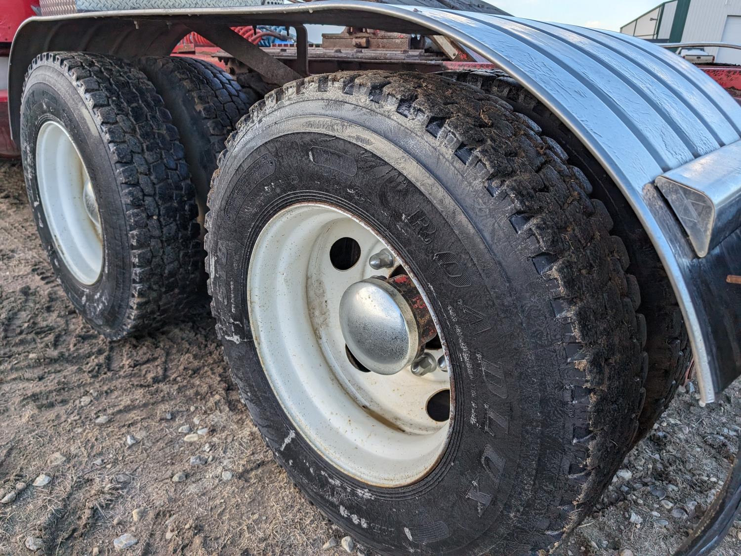 Cummins N14 14 L 6 cylinder 330 HP diesel engine, engine brake, Eaton Fuller FRO14210C 10 speed manual transmission, 26 inch sleeper, A/C, cruise control, air ride driver seat, radio, 2-way radio, stereo, hydraulic wet kit, tool boxes, air ride cab, Neway air ride suspension, 12,000 lb front axle, 46,000 lb rear axles, full lockers, 5.29 ratio, 209 inch WB, 11R22.5 tires