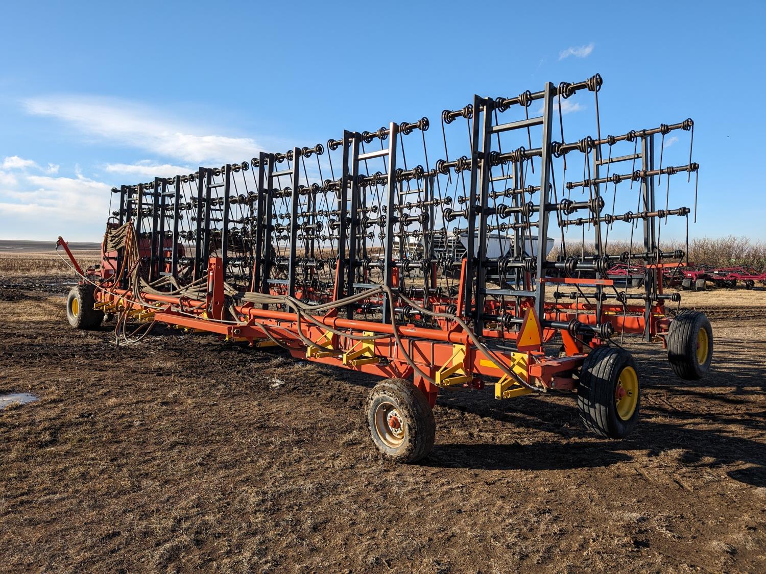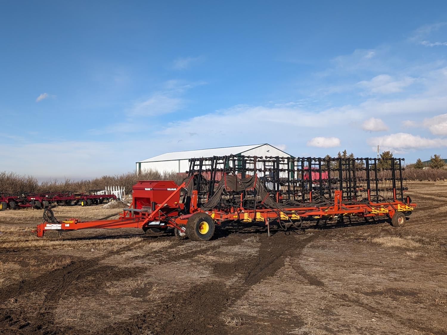 94 2003 Bourgault 7200 84 Ft Heavy Harrow Bar w/ Valmar 3255 Fertilizer Applicator
