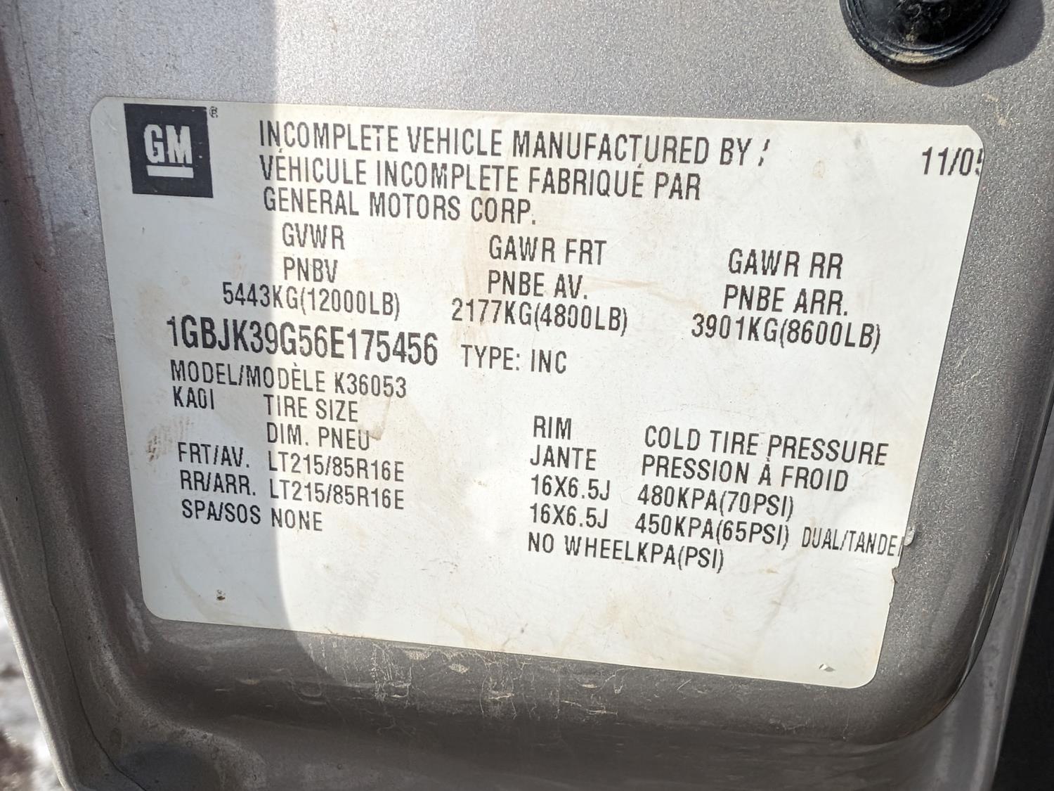 Ser #: 1GBJK39G56E175456