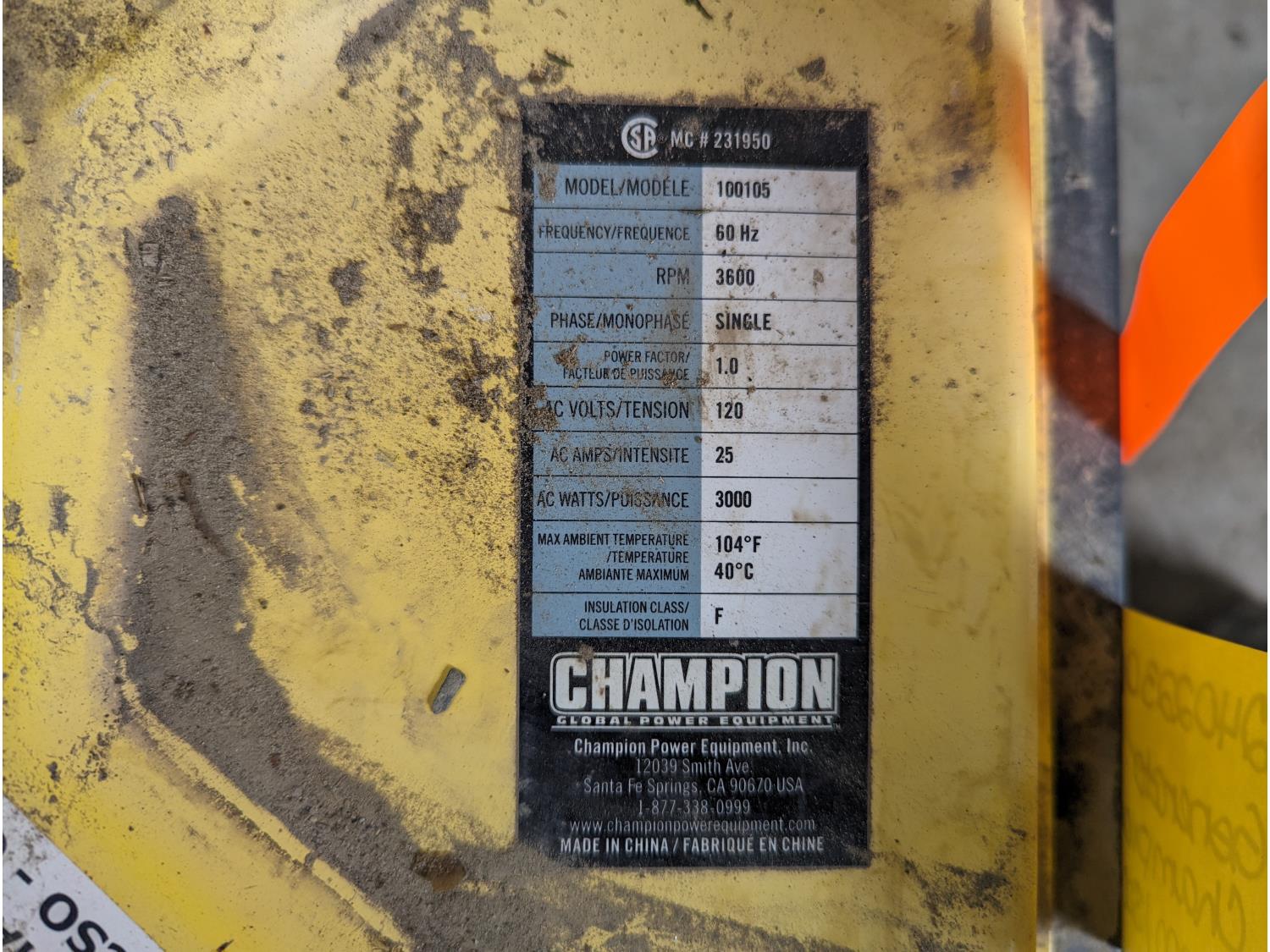 1297 Champion 100105 4000 Watt Generator