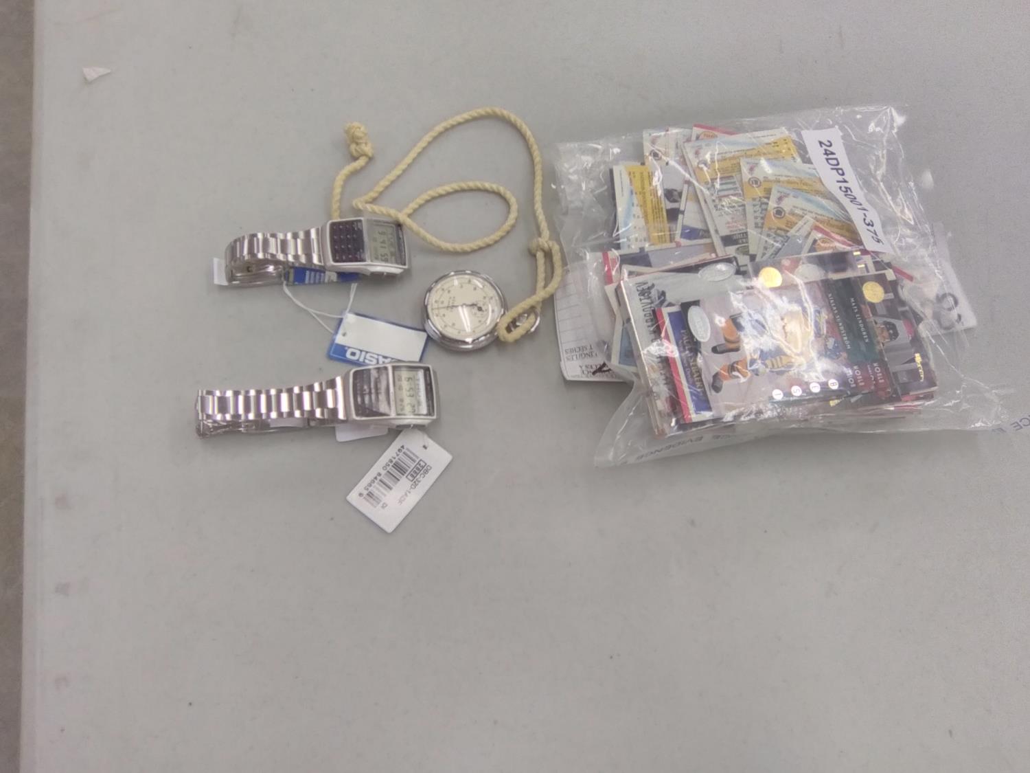 1060 Hockey Cards, (2) Calculator Watches & Pocket Watch