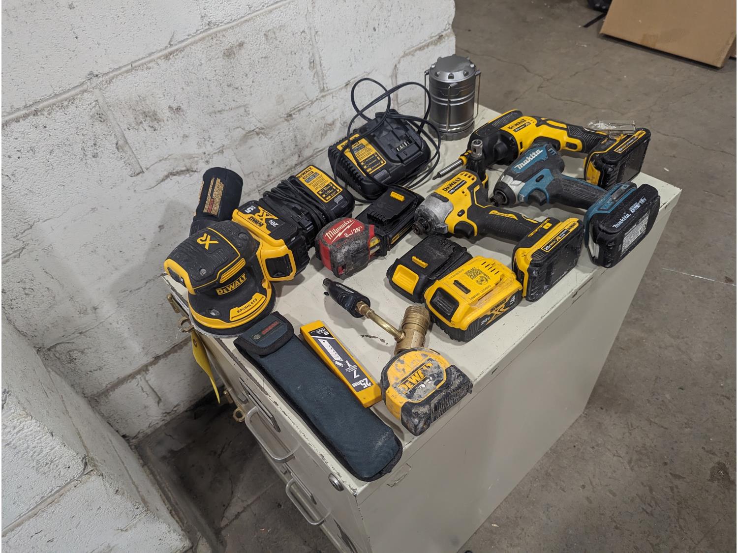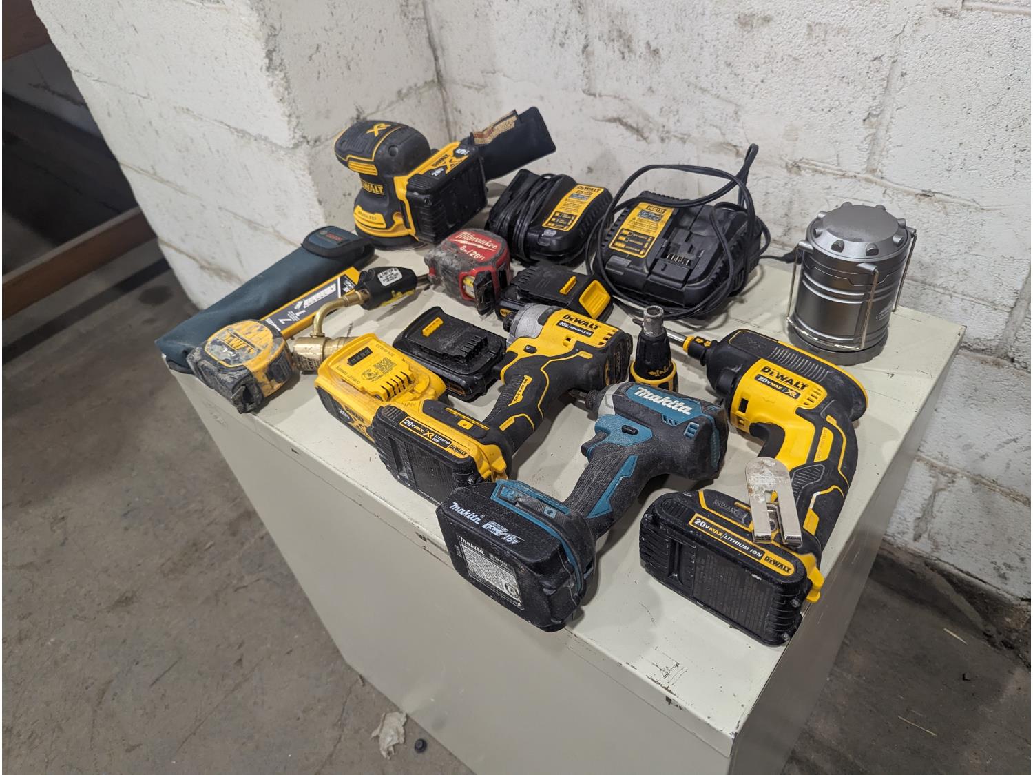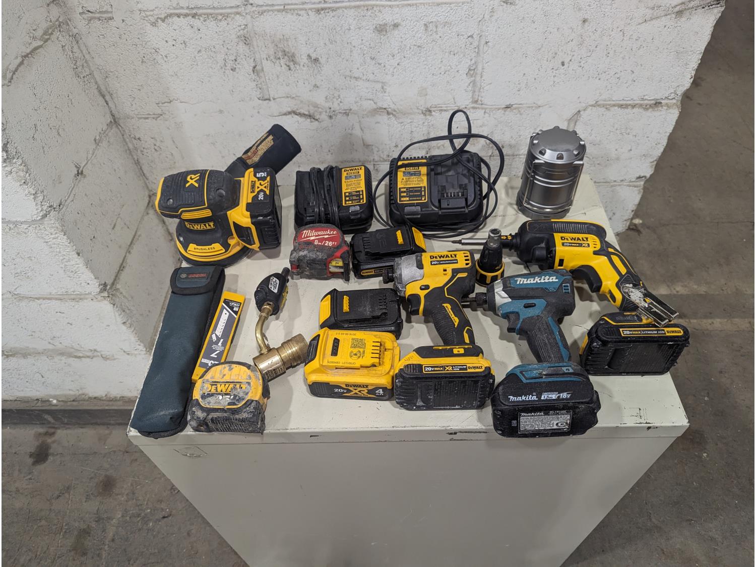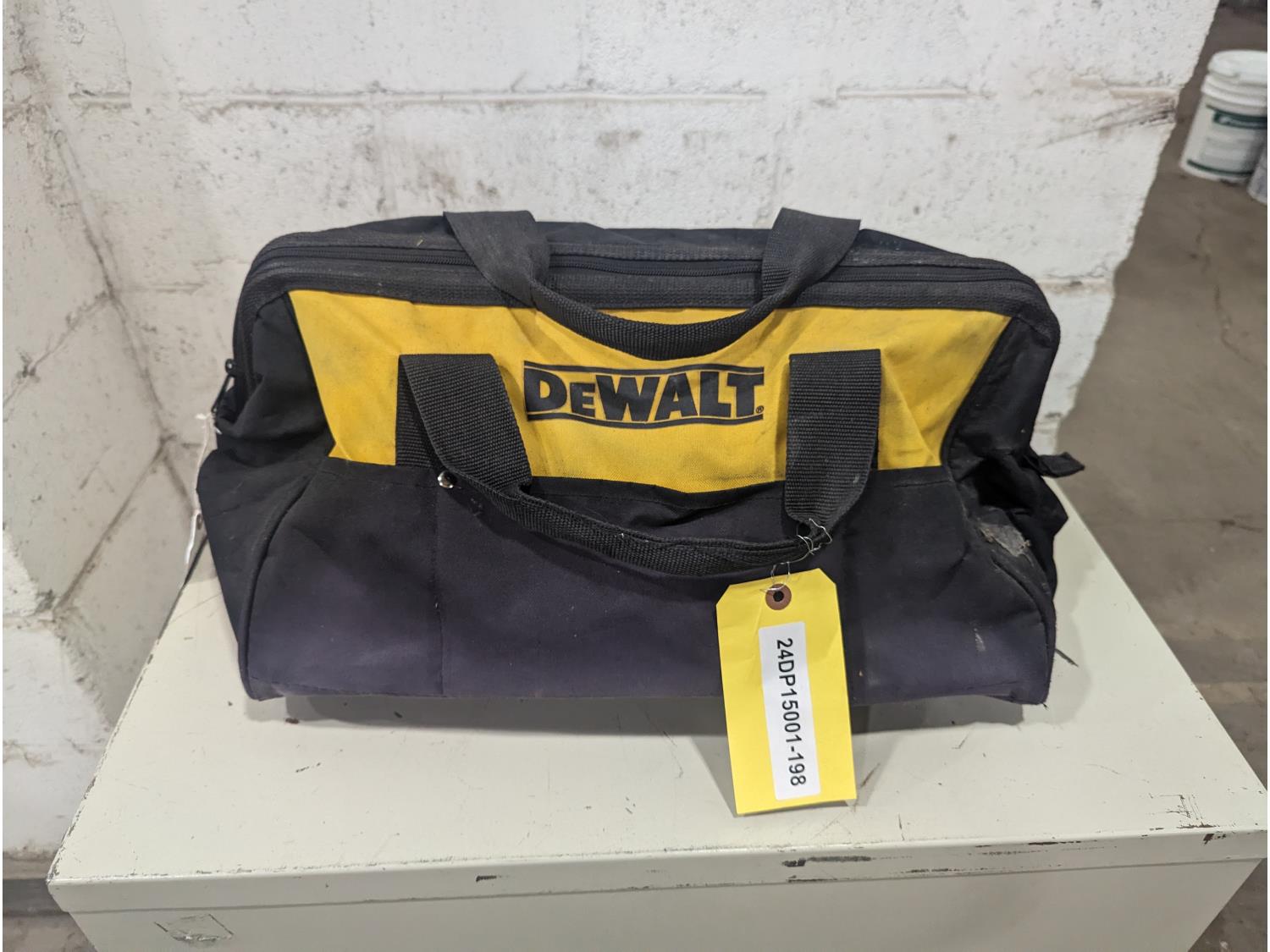 1369 DeWalt Tool Bag W/Drill, Impact Driver, Palm Sander, Batteries and Charger