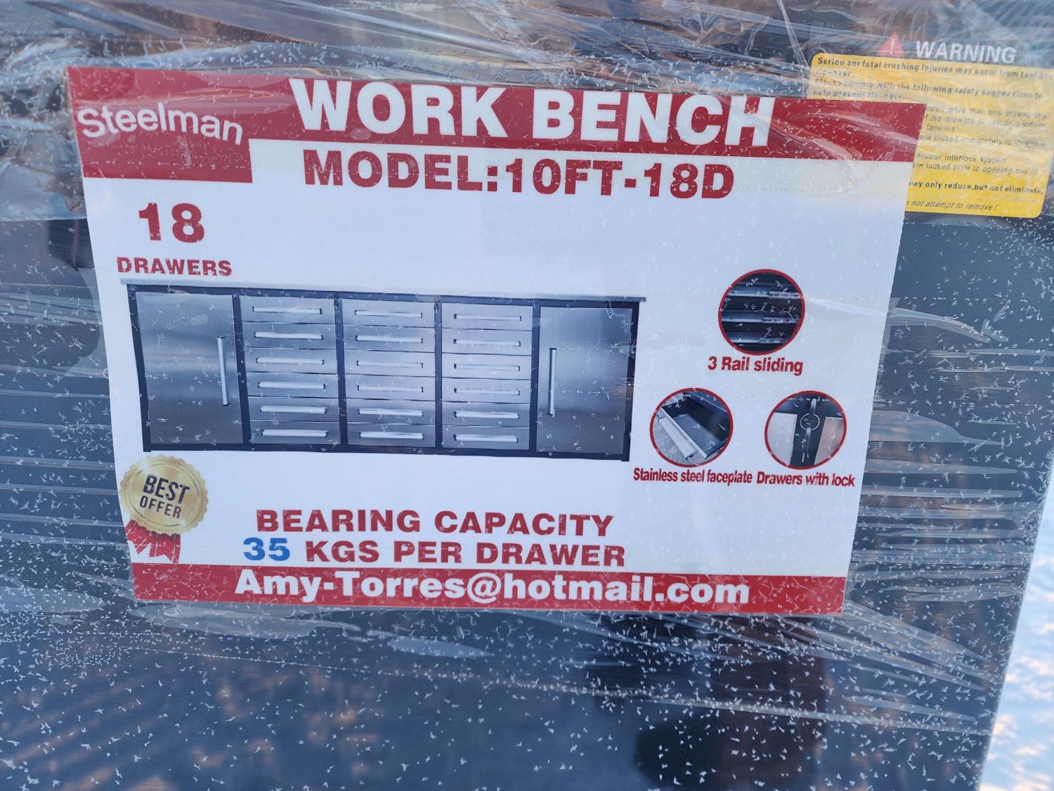 55 2024 Steelman 10 Ft 18 Drawer Work Bench with (2) Cabinets (Unused)