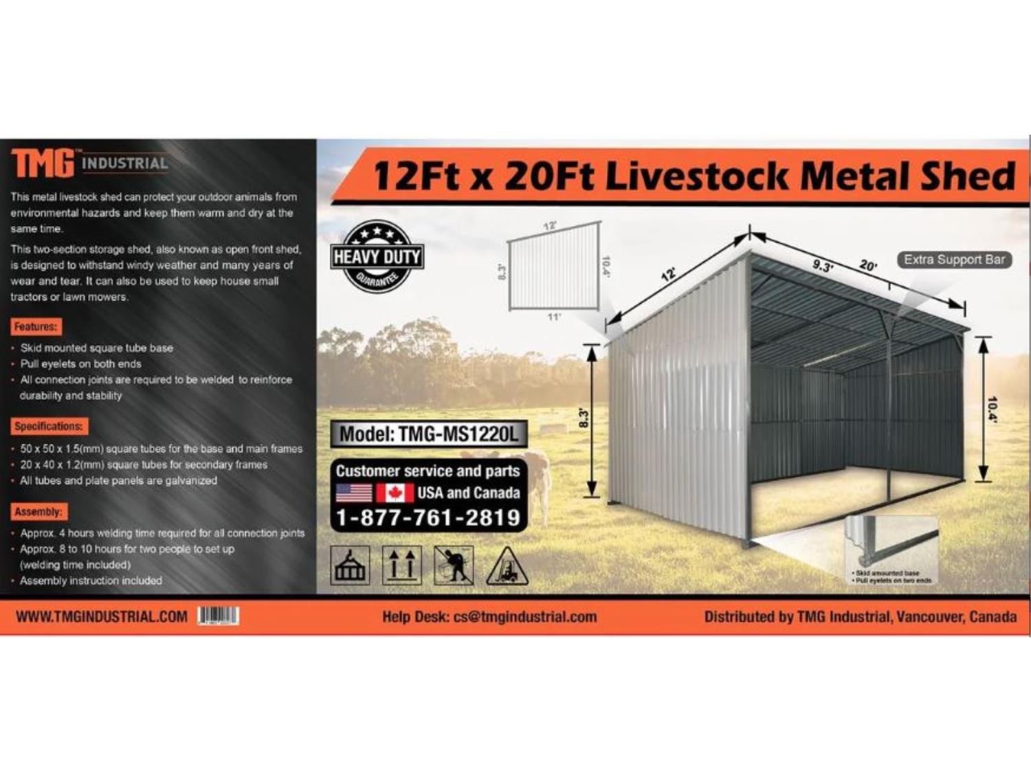 257 TMG Industrial MS1220L 12 Ft X 20 Ft Galvanized Metal Livestock Shed (Unused)