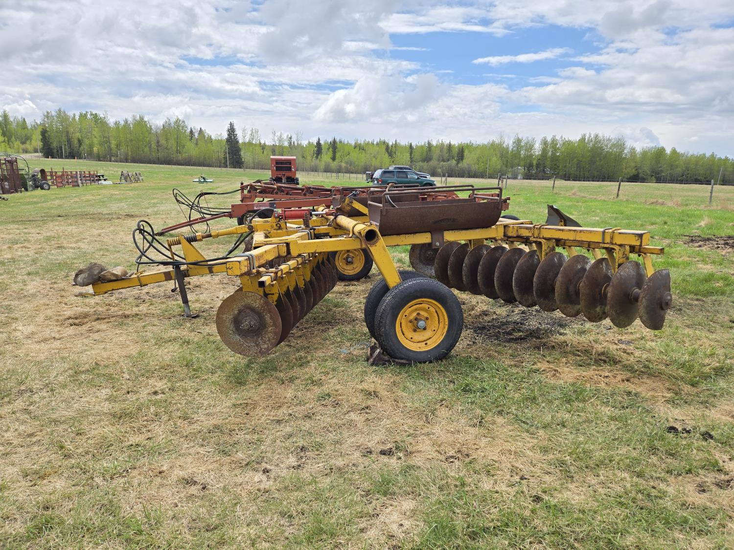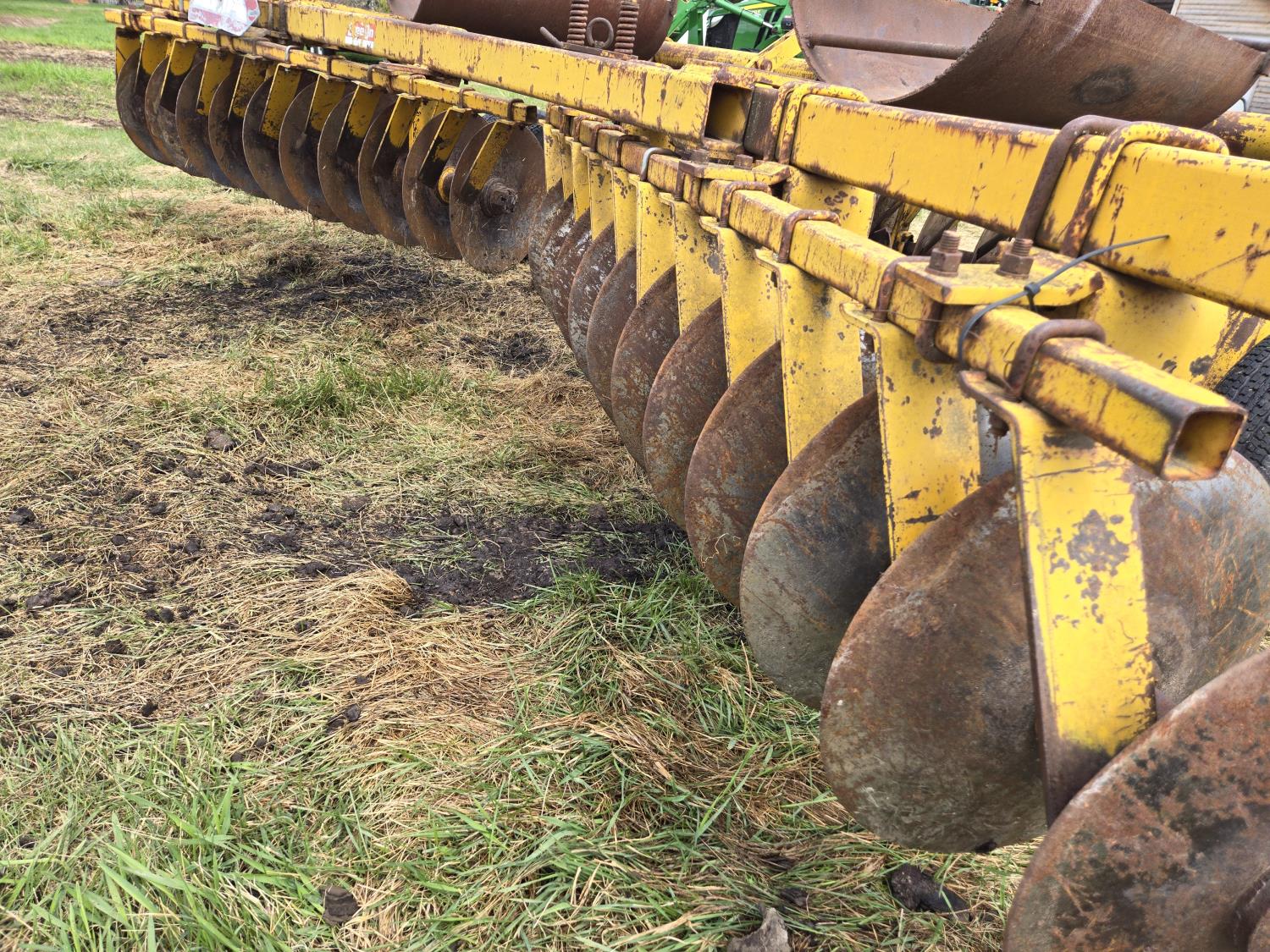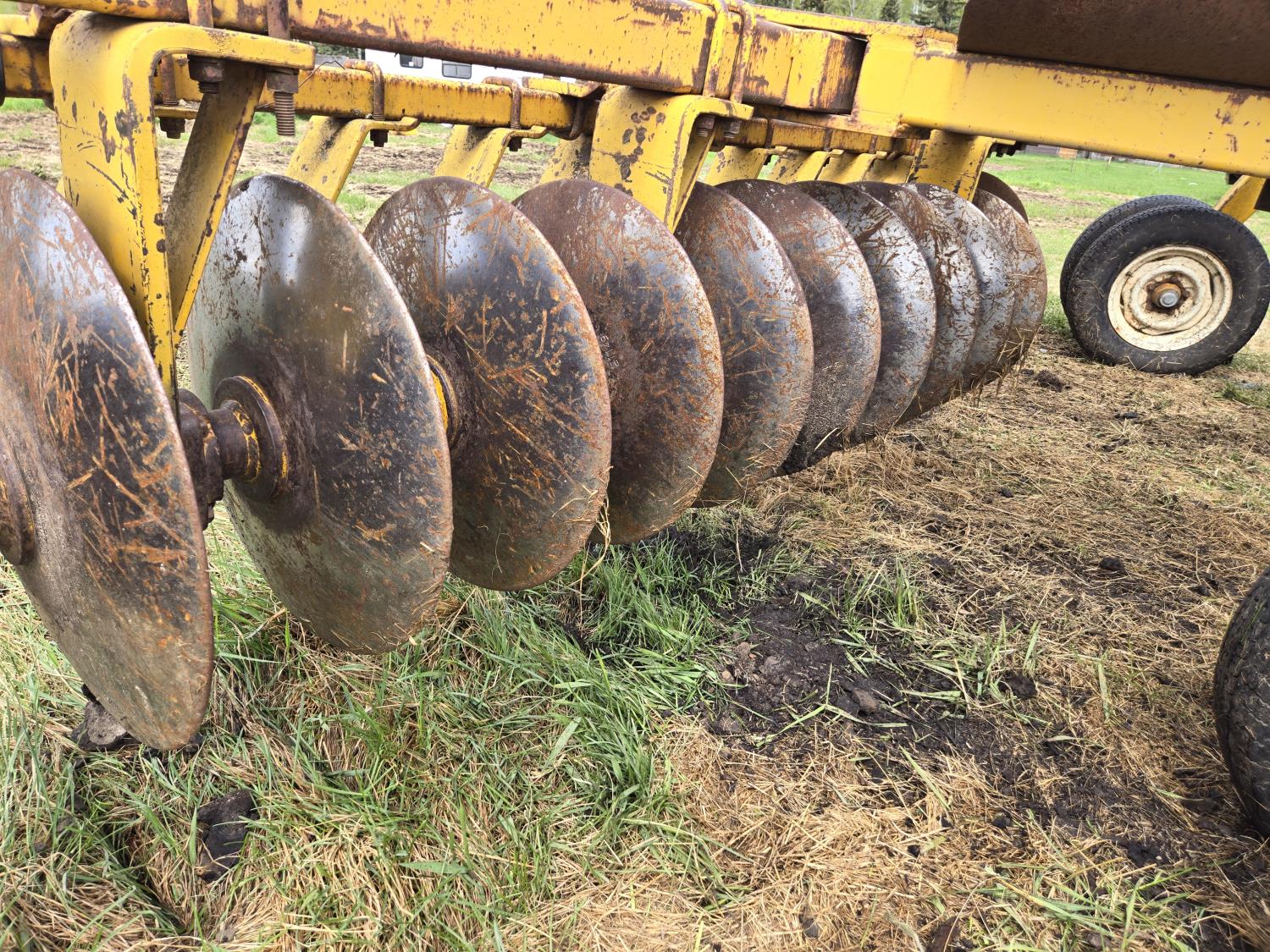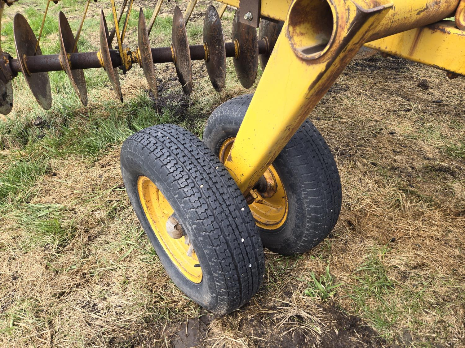 front: 8 inch spacing smooth 18.5 inch discs, rear: 8 inch spacing smooth 19.5 inch discs, hitch leveling, scrapers, duals main frame, hydraulic lift cylinder, 205/75R15 main frame tires