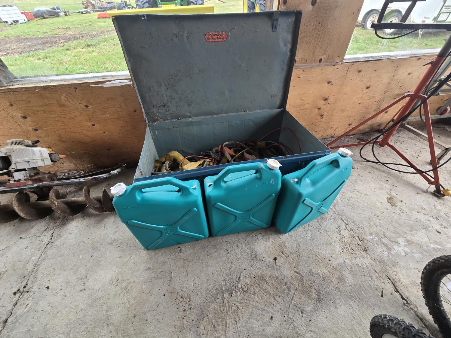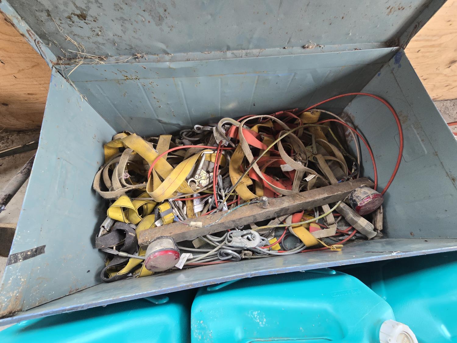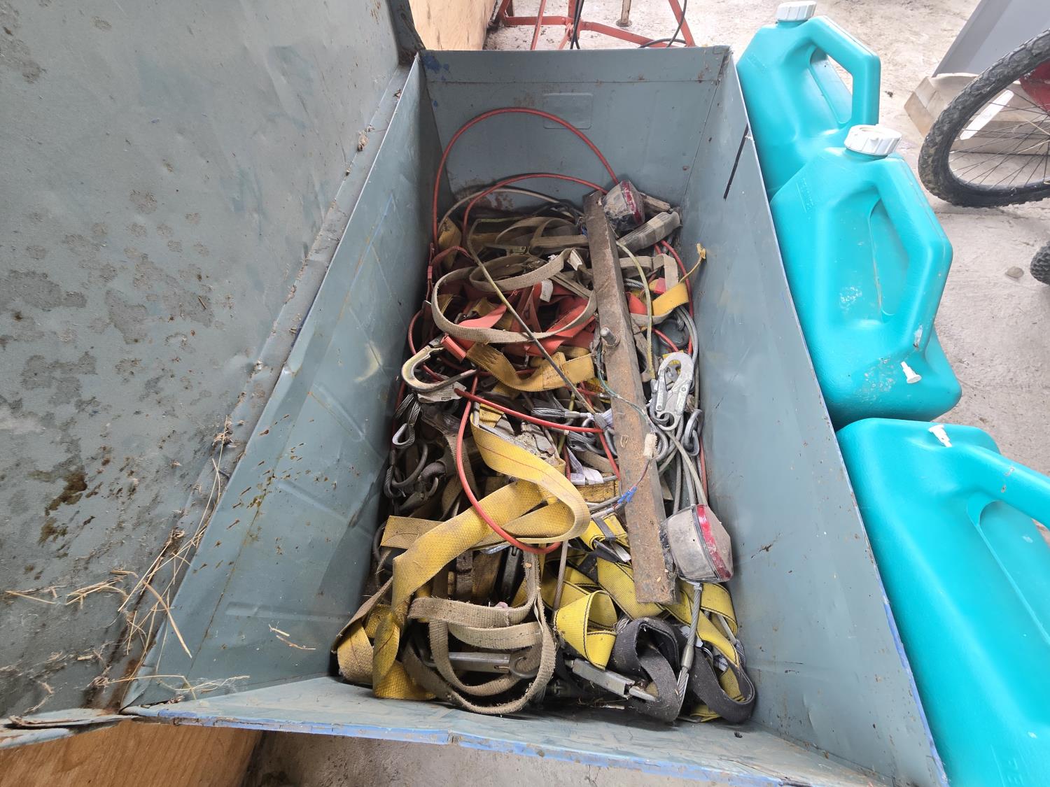 184 (3) 23L Water Jugs, Qty of Safety Harnesses in Metal Storage Box
