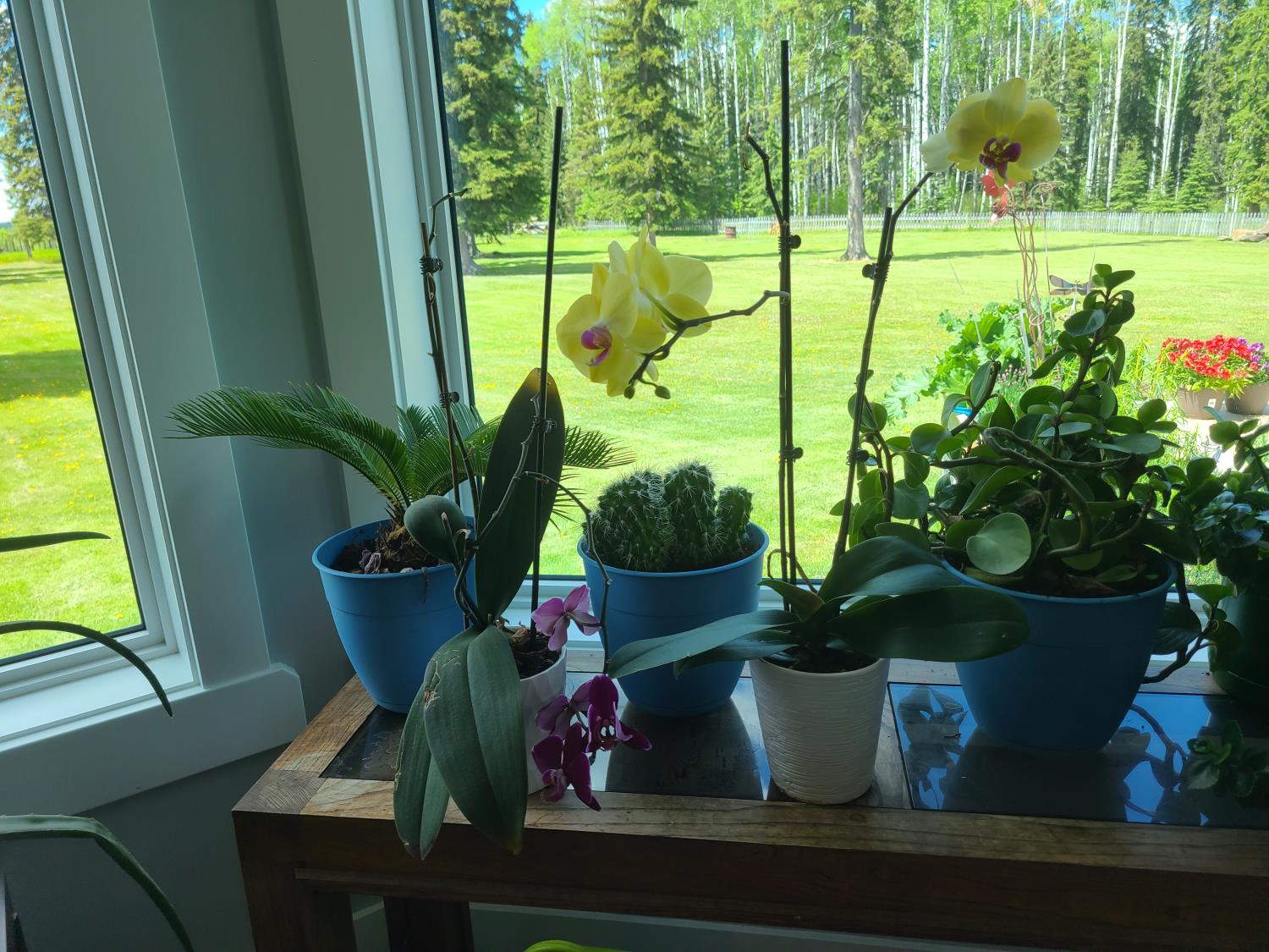 (2) aloe vera plants, cycad, orchid & cactus