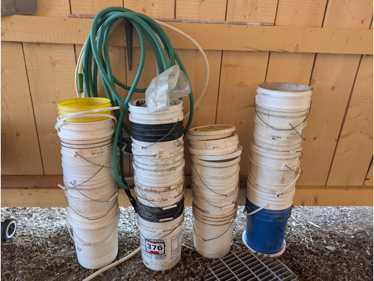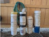 Assorted 5 Gallon Buckets & Hoses