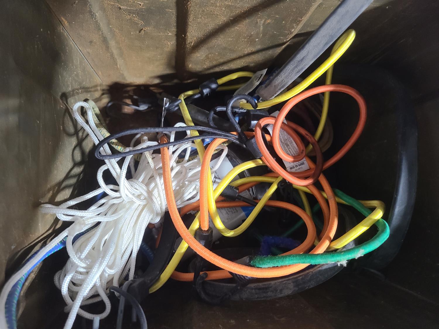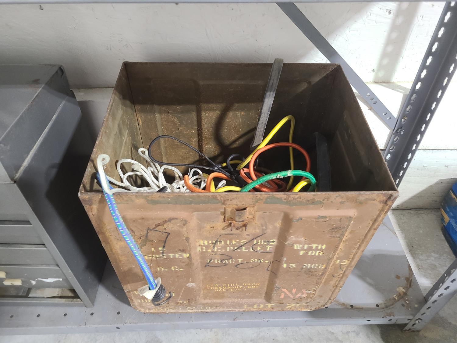 4 ft lightbar, coleman camp grill, grease tube storage box, tool box, box of bungy cords and straps