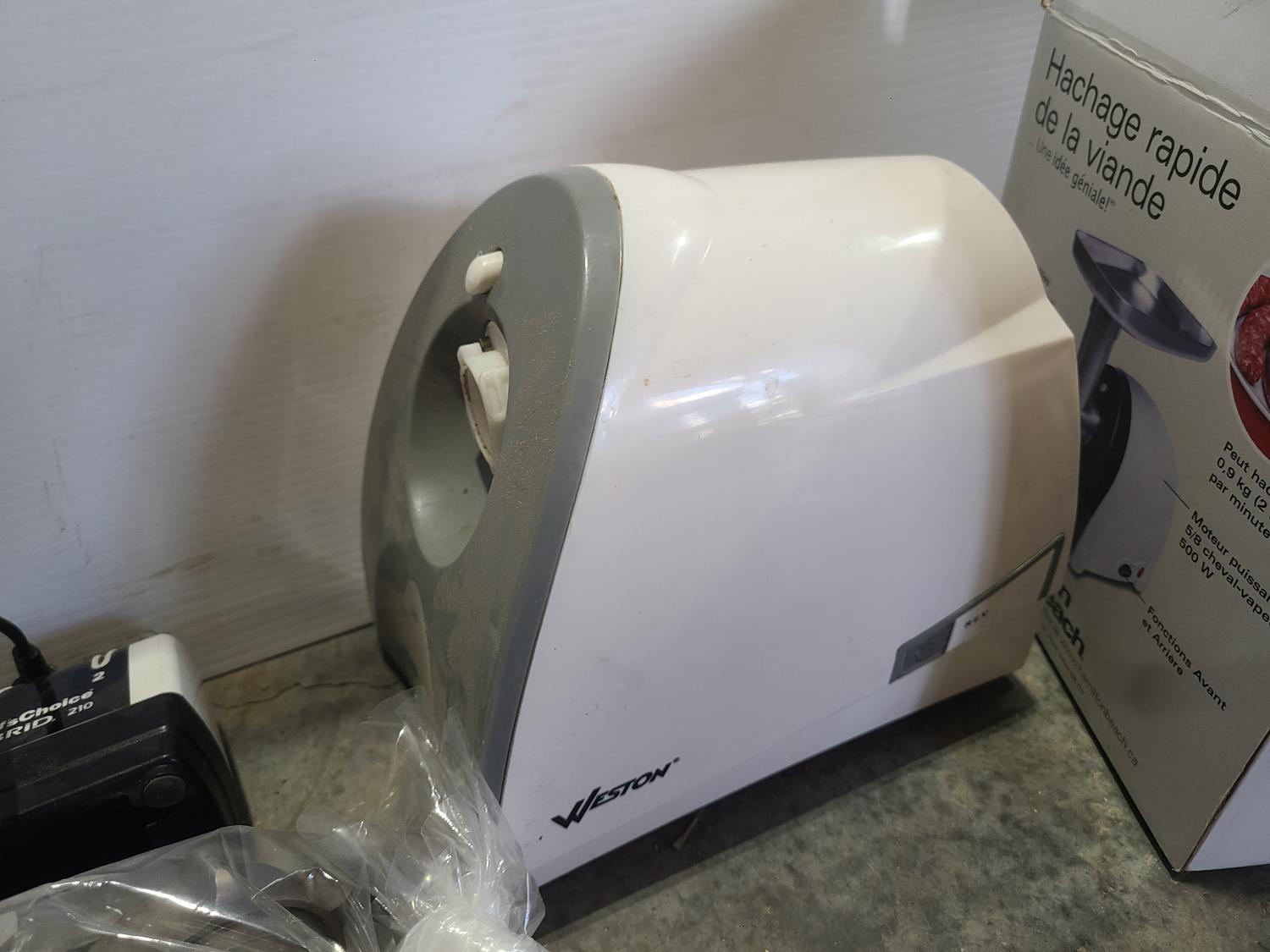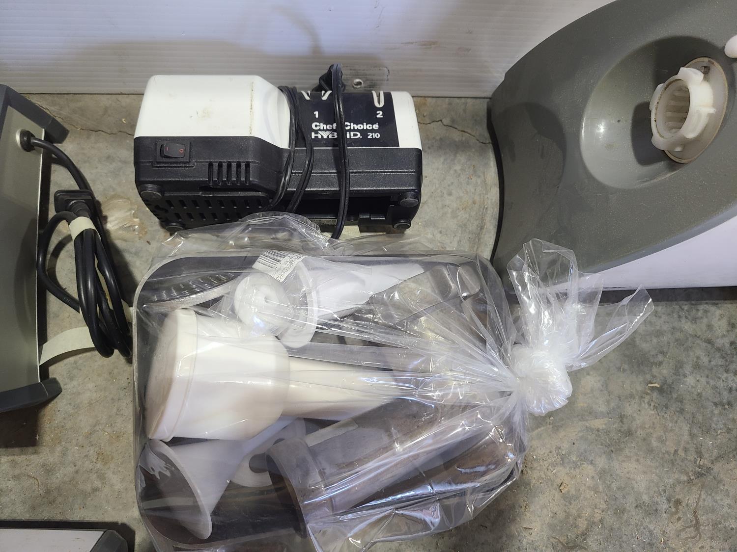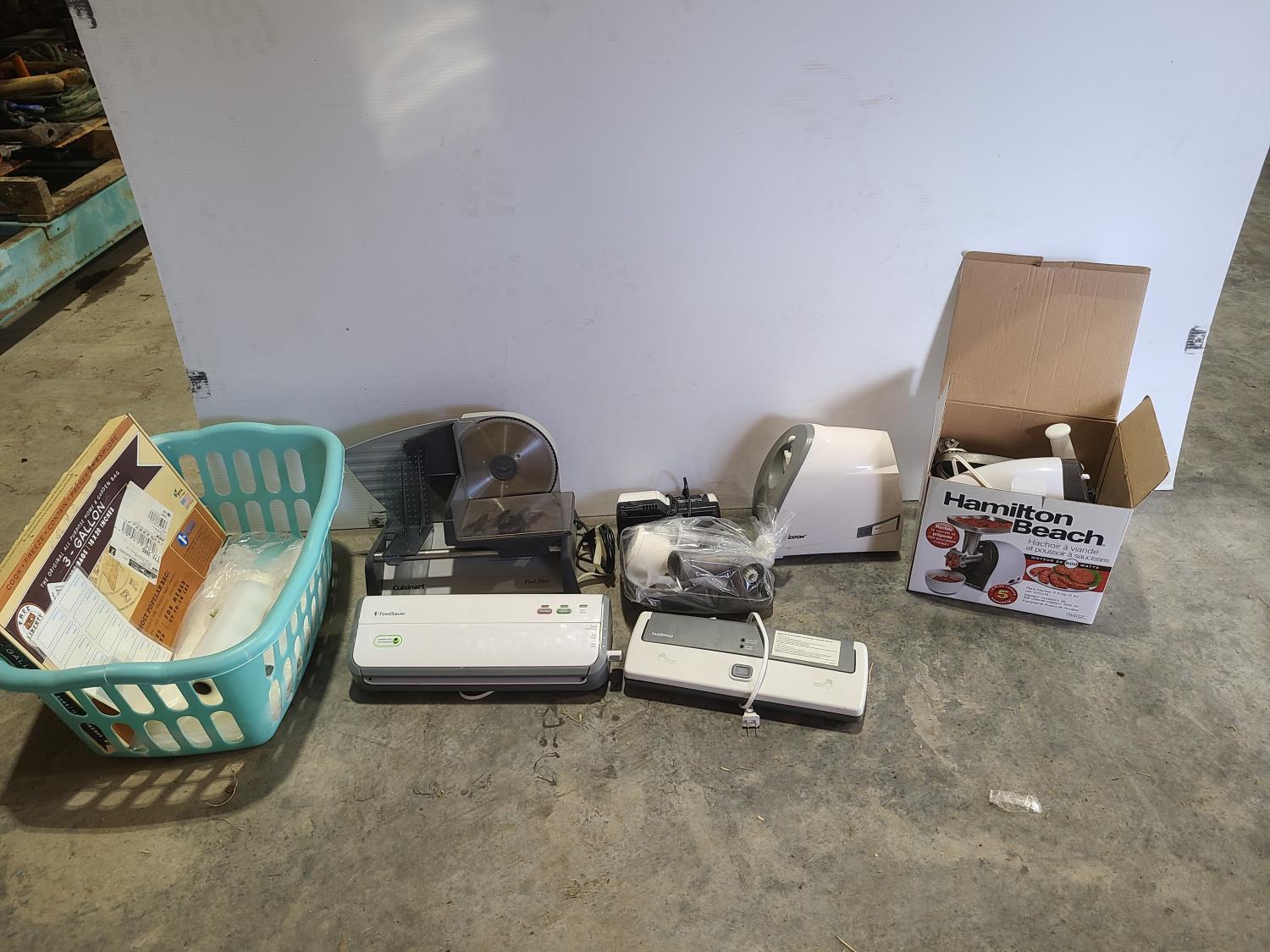 (2) vacuum sealers, meat slicer, (2) meat grinders