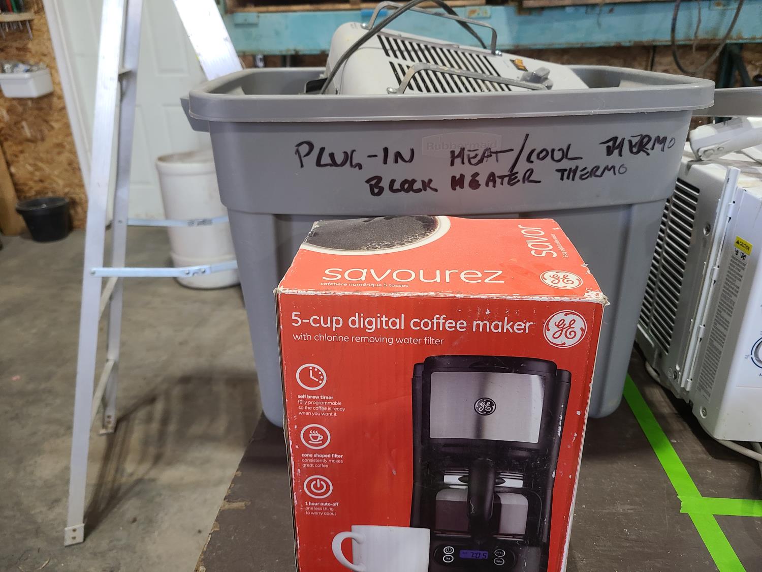 41 Qty of Appliances, Coffee Maker, Heater, Iron, Tool Belt