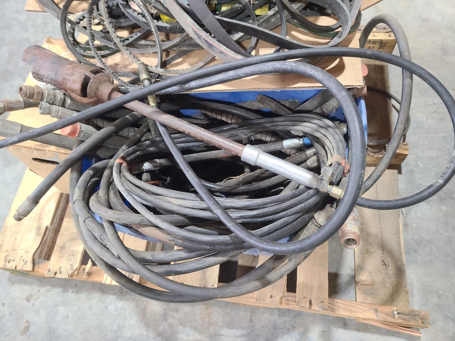 113 Qty of Hydraulic Hoses, Belts & Wire